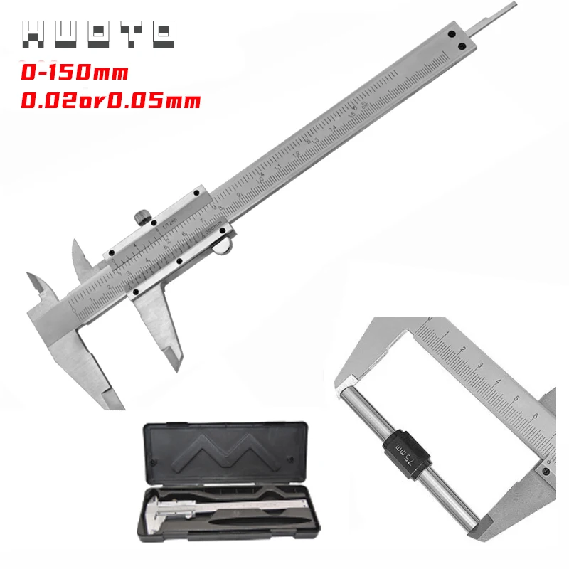 Штангенциркуль из высокоуглеродистой стали, 0-150 мм, 6 дюймов, 0,020,05 мм