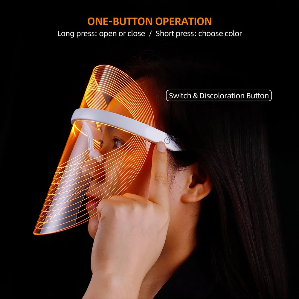 Идеально подходит для лица, с использованием технологии нано-складной светильник для уменьшения пор, упругой кожи, Технология нано-складной светильник: это не прямой светильник. Он принимает дизайн нано-складной светильник, а цветной светильник нежный и не повреждает глаза и не влияет на внешнюю линию зрения. Маска безопасна для кожи, оправа позволяет носить ее стабильно и комфортно. Спектроскопия с тяжелой длиной волны: спектр длин волн трех цветов играет важную роль. Закрытый сенсорный выключатель: Нет необходимости снимать крышку кнопки управления, выберите режим photon beauty