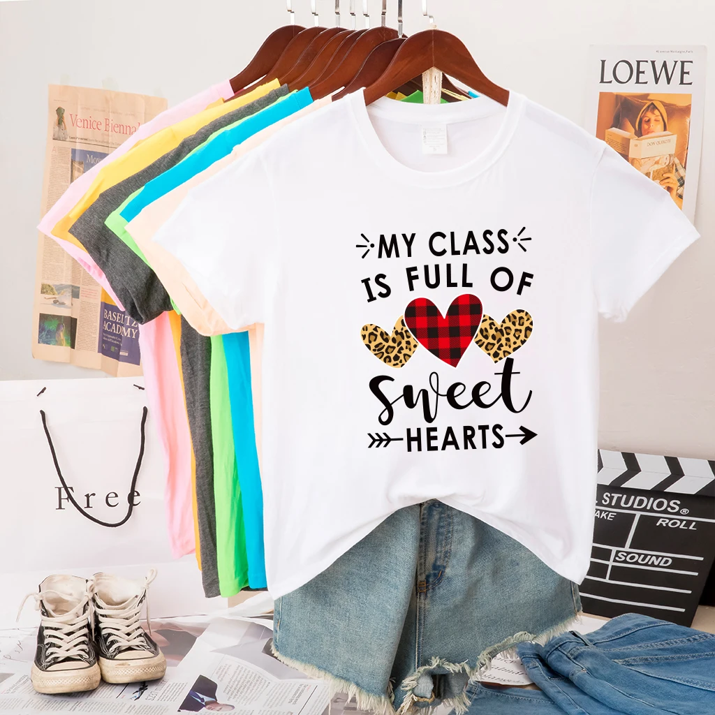 Мой класс полон сладких сердец печати учительницы рубашка для женщин короткий рукав свободные Femme Футболка подарок на день Святого Валентина