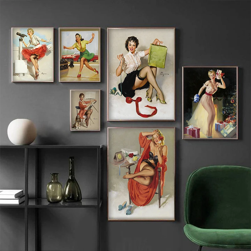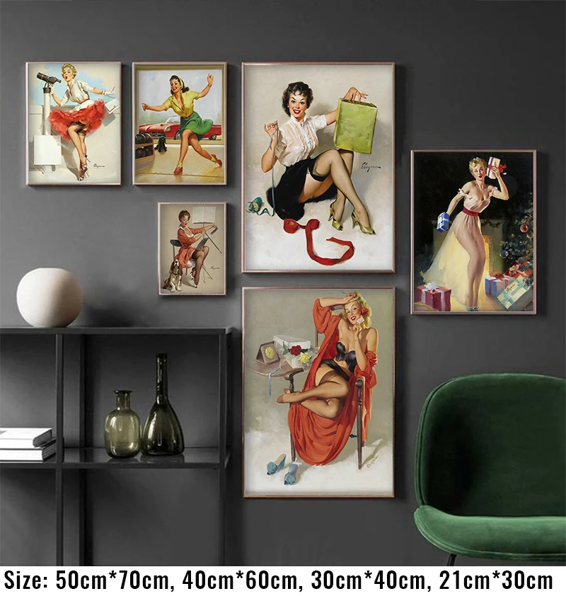 Винтаж сексуальный пин-ап для девочек иллюстрации постер декоративная стена Стикеры Холст Картина художественная фотография для ручной стержень, для кафе, для Паб домашний декор
