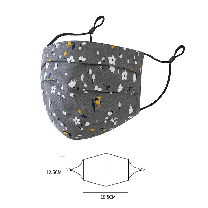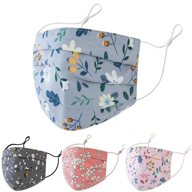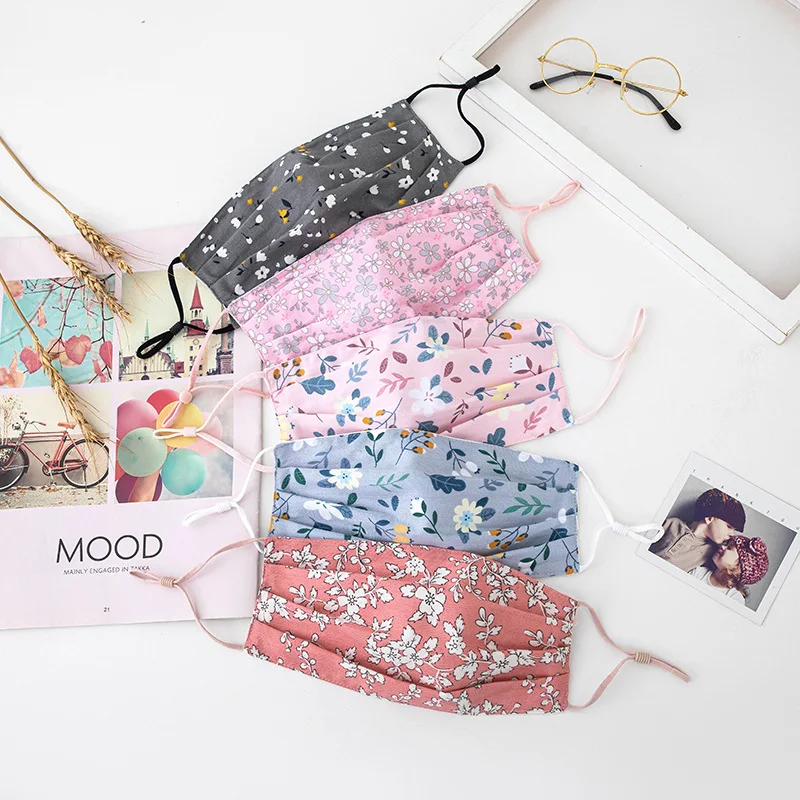 Маска многоразовая Женская со складками, Модная Складная маска для взрослых, с цветочным принтом, дышащая, регулируемая
