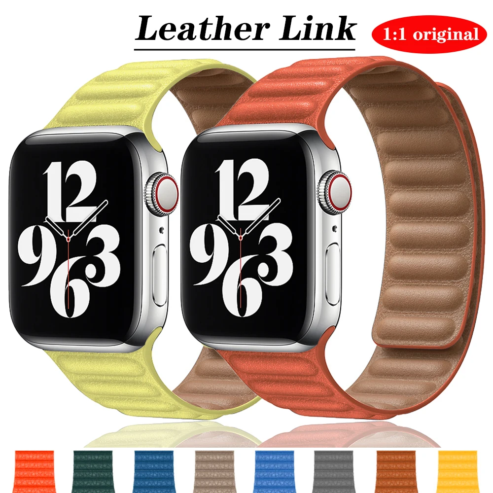 Ремешок кожаный для Apple Watch 7 6 5 4 SE band, оригинальный магни...