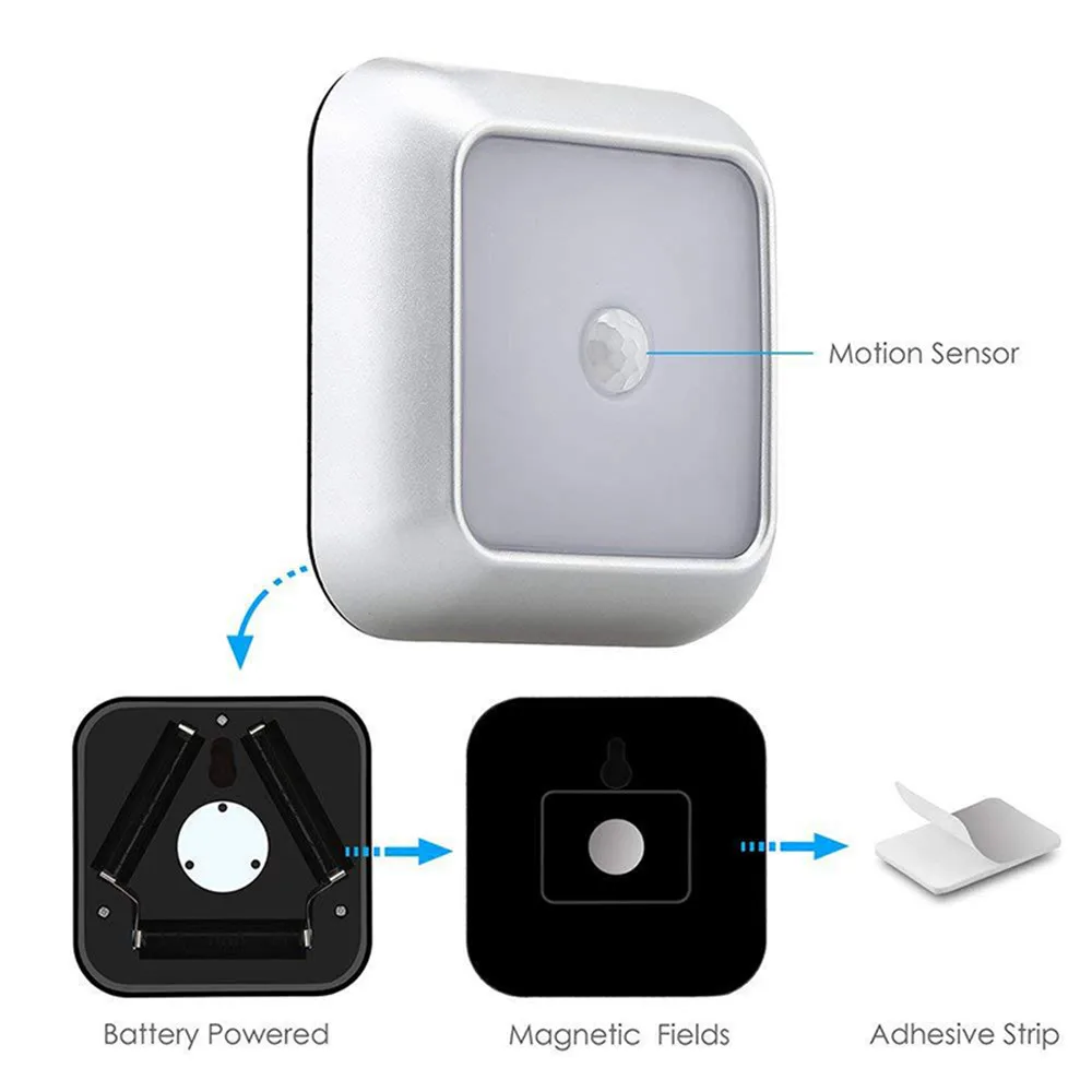 Креативный светодиодный квадратный датчик движения, ночник с батарейным питанием, индукционный светильник для людей, освещение для лестницы, дорожки, спальни, шкафа, лампа