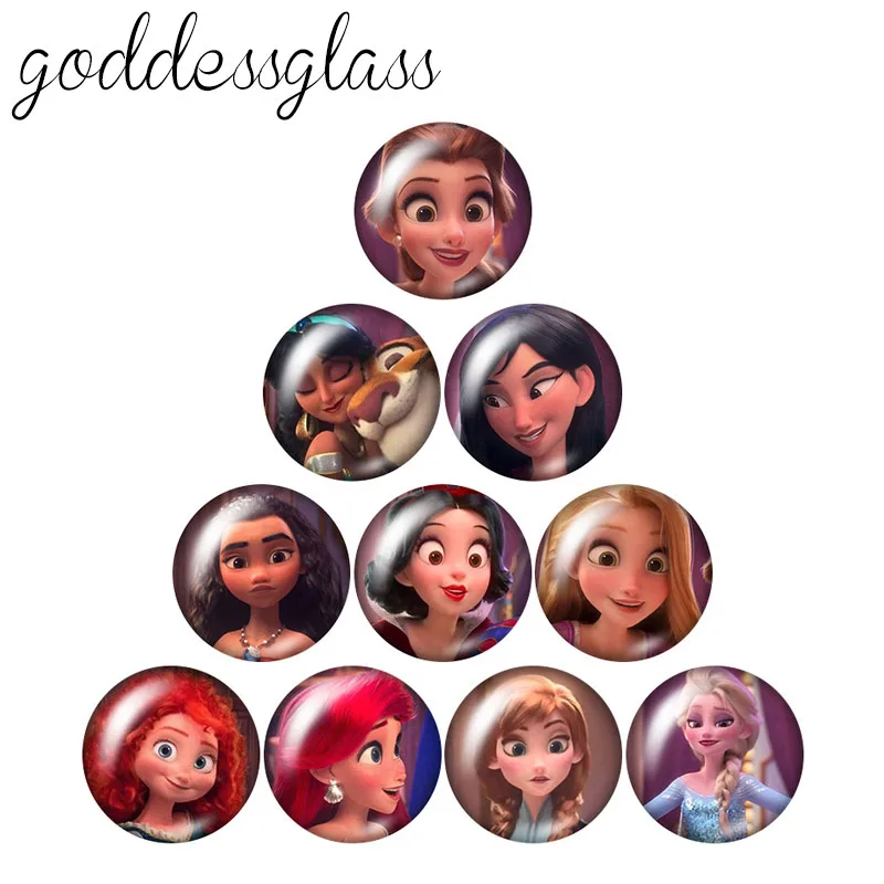 Disney принцессы Belle Эльза жасмина 10 шт. 12 мм18 мм20 мм25 мм кабошоны круглые фото кабошоны разрисованные изделия из стекла с плоской задней частью Цепочки и ожерелья, украшения своими руками