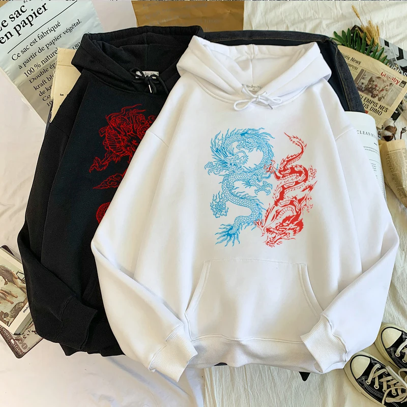 Худи женское Винтажное с принтом дракона, толстовка в стиле оверсайз, уличная одежда в стиле Харадзюку, повседневный свитшот, зимняя одежда