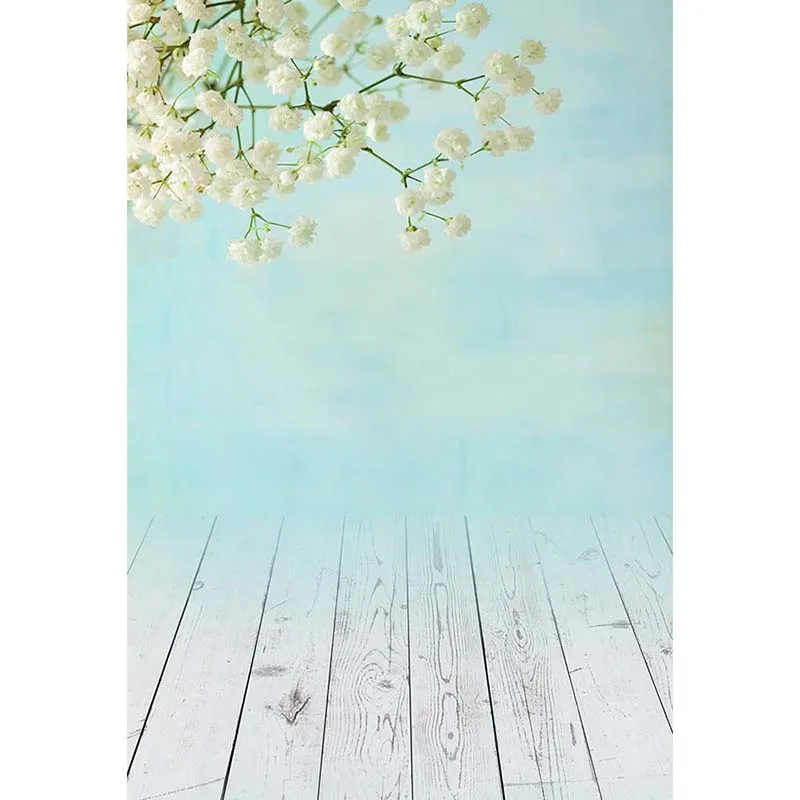 Фон для фотосъемки с изображением белых цветов и деревянного пола