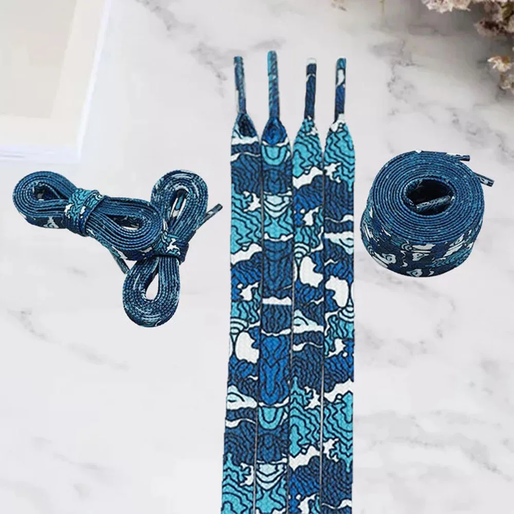 Шнурки из бегонии, с принтом морских волн, 100 см, для обуви