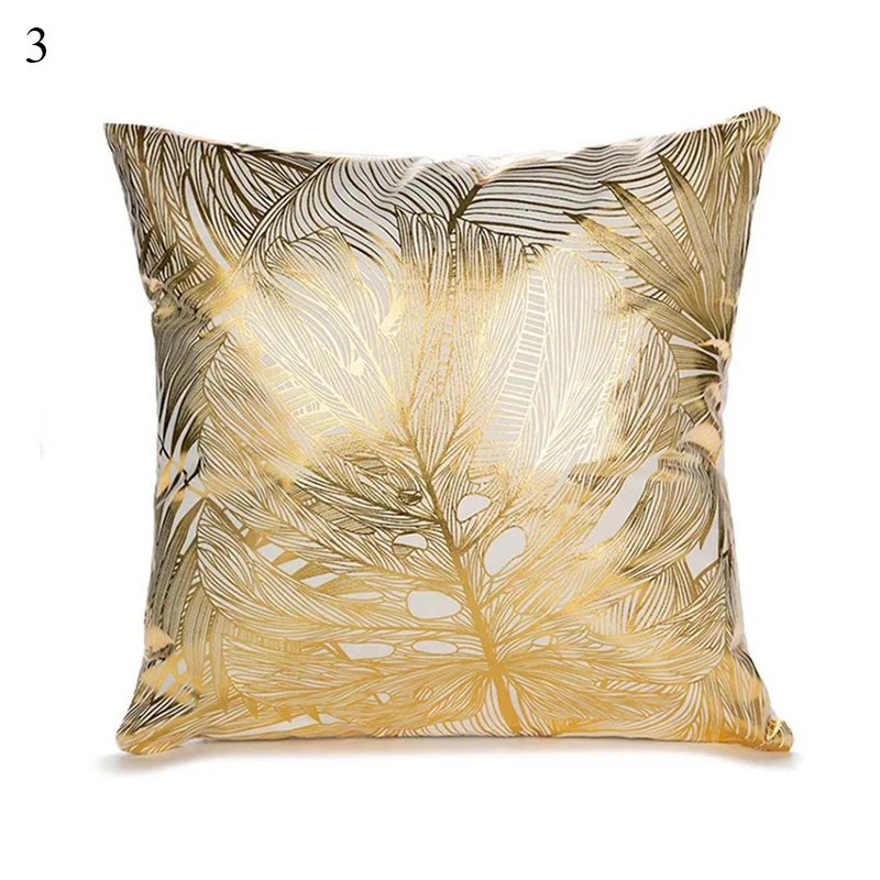 Золото с принтом в виде листьев, накидка для подушки, домашняя поду...