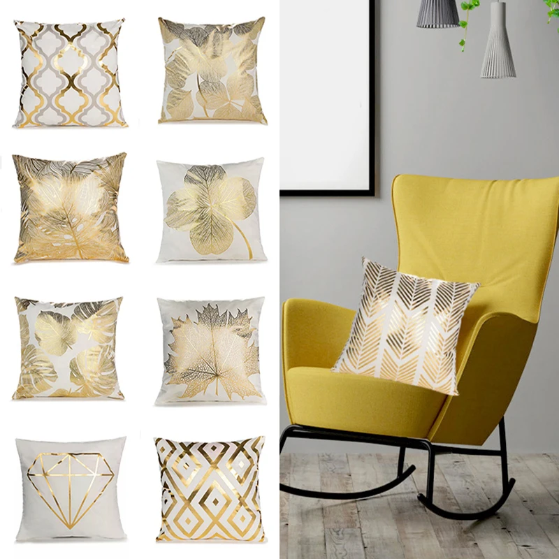 Декоративные наволочки лист из золотой фольги, белые, чехол для подушки из полиэстера, наволочка для дивана, спальни, домашний декор, наволочка для подушки