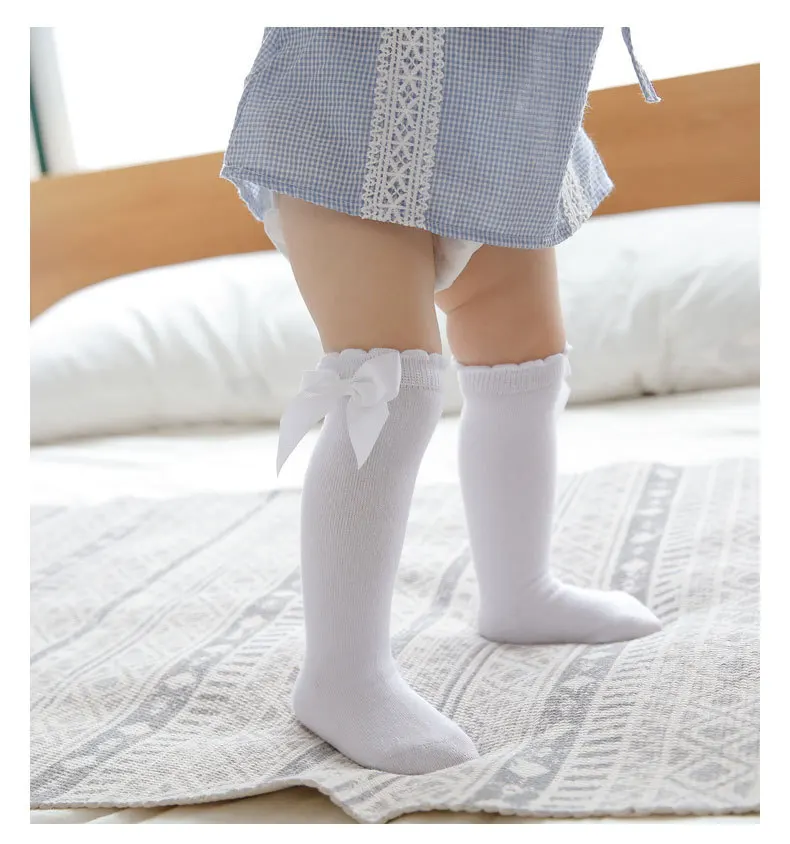 Детские носки для девочек, длинные гольфы, гольфы для девочек, Хлопковые гольфы с бантом и оборками, подарок принцессе, детская одежда