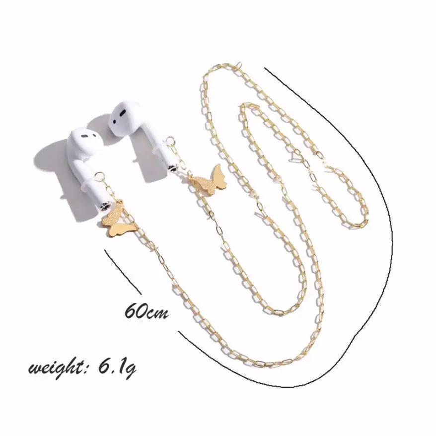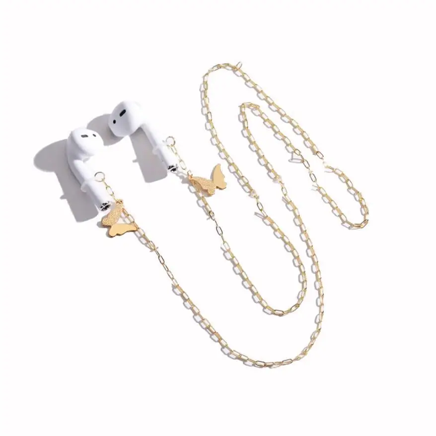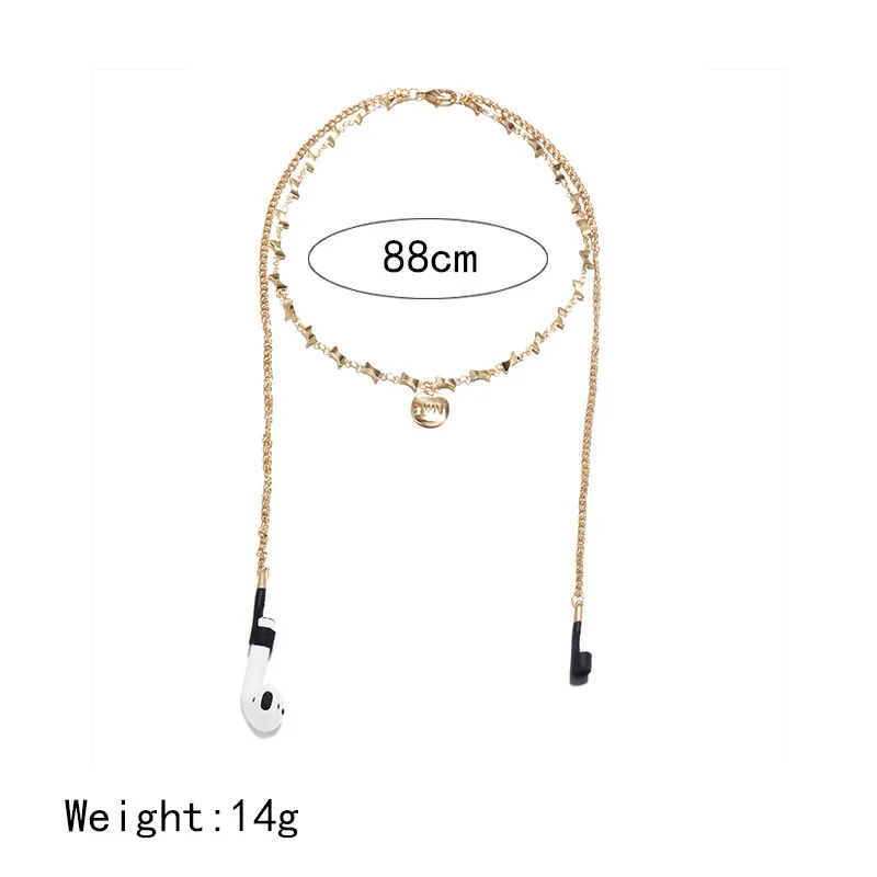 Bluetooth-гарнитура, длинное ожерелье с защитой от потери, для беспроводных наушников Airpods, серьги, звезда, бабочка
