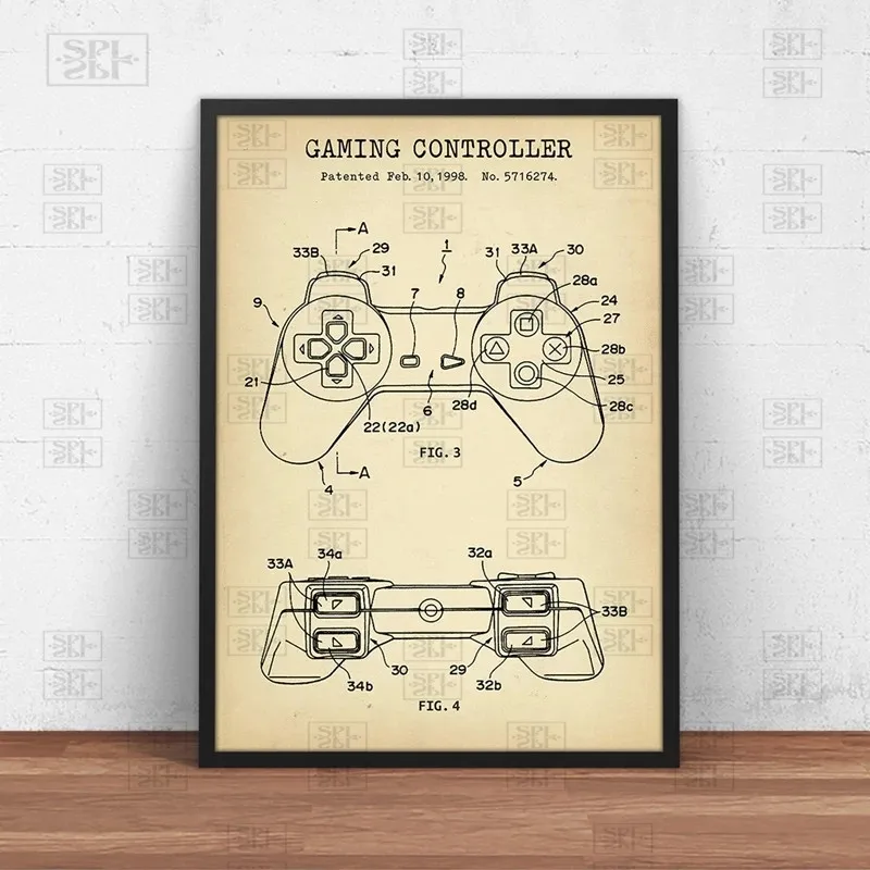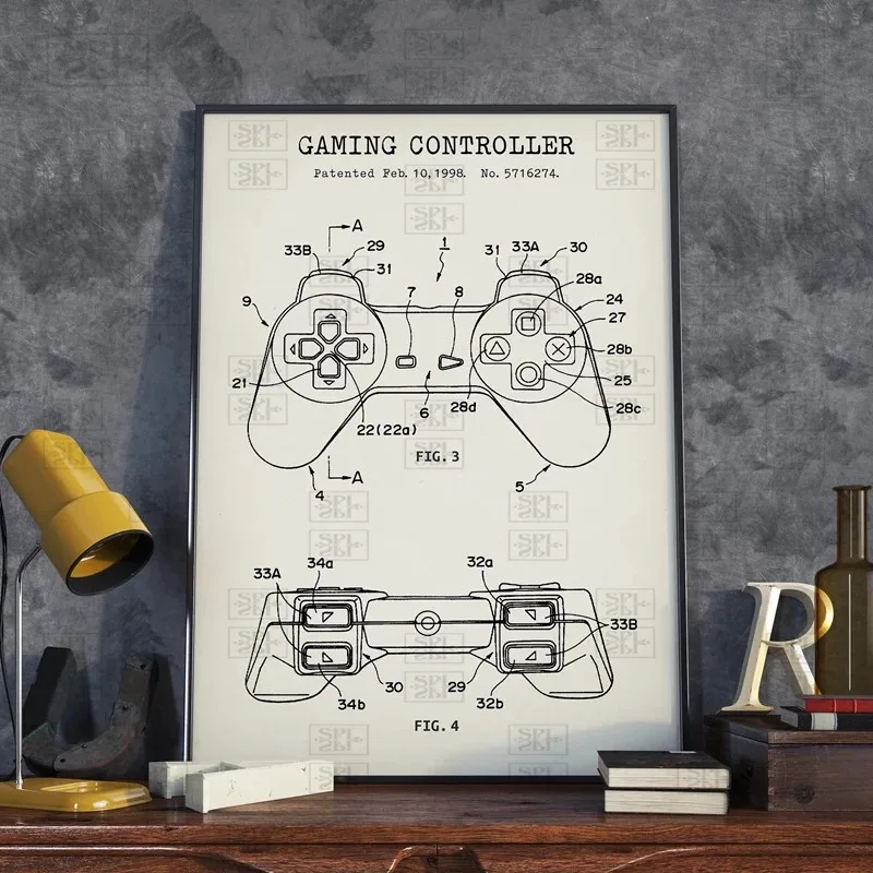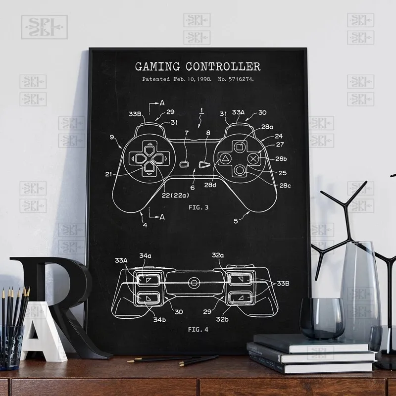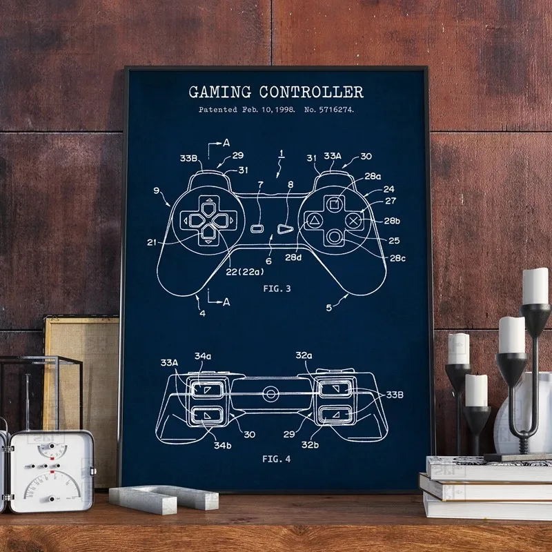 Игровой контроллер Blueprint художественный холст постеры патентные принты геймер подарки Декор игровой комнаты геймпад постер настенная живопись