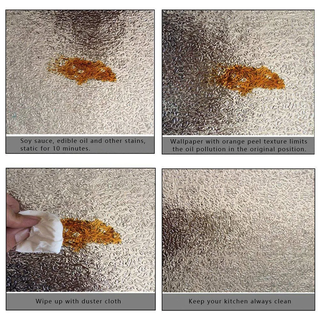 Легко наносится и мгновенно Съемные, когда вам больше не нужно, эти кухонные обои из алюминиевой фольги Сделано для вашего удобства.