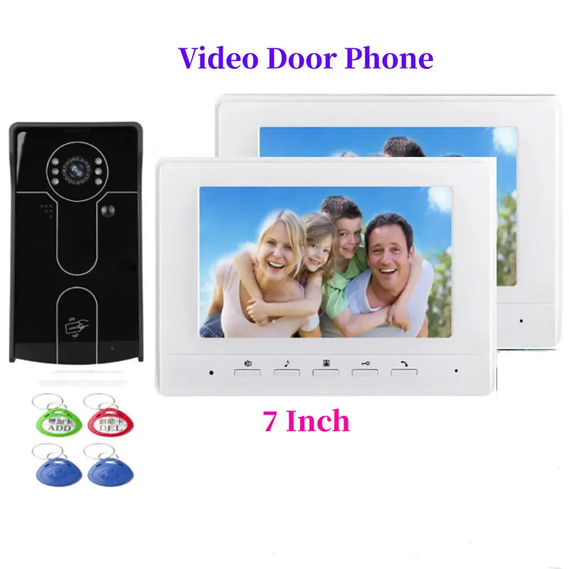 Напольный видеодомофон, система связи с 2 мониторами и дактилоскопическим паролем, уличная камера для 2 семейных домов, 7 дюймов