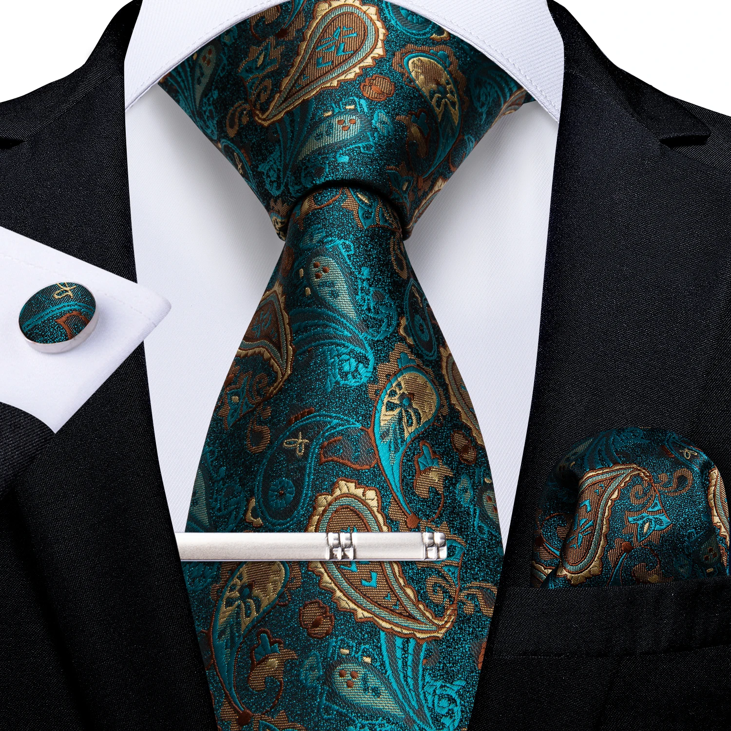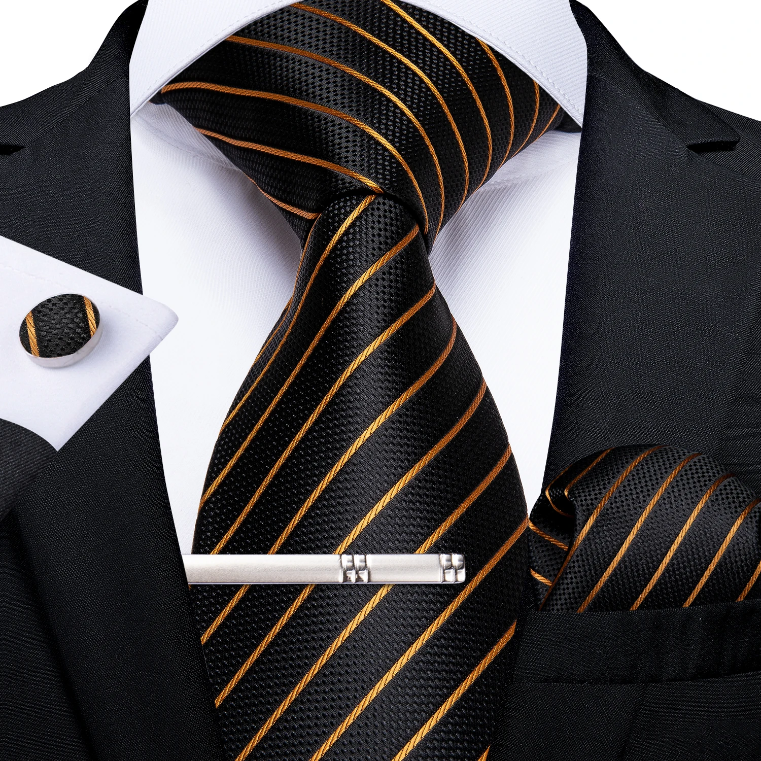 100% шелк роскошные мужские галстуки золотые перья галстук с принтом карманные Квадратные Запонки Бизнес-платок галстук подарок для мужчин DiBanGu