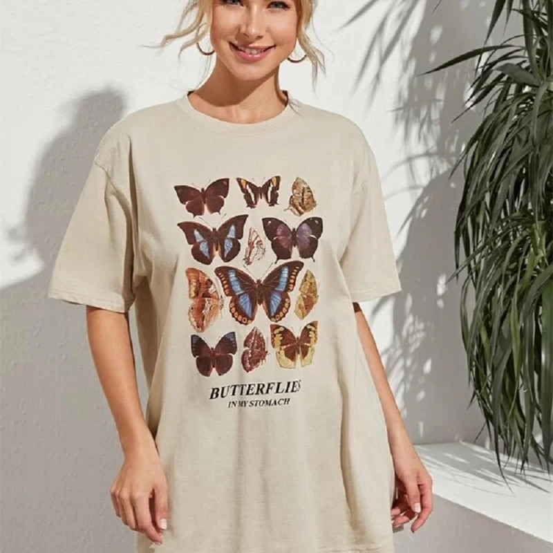 Kuakuayu HJN стать изменение женский бабочка печати t-рубашка летня...