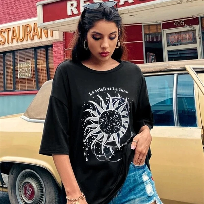 Футболка Pudo YF Luna в готическом стиле, черная рубашка оверсайз в...