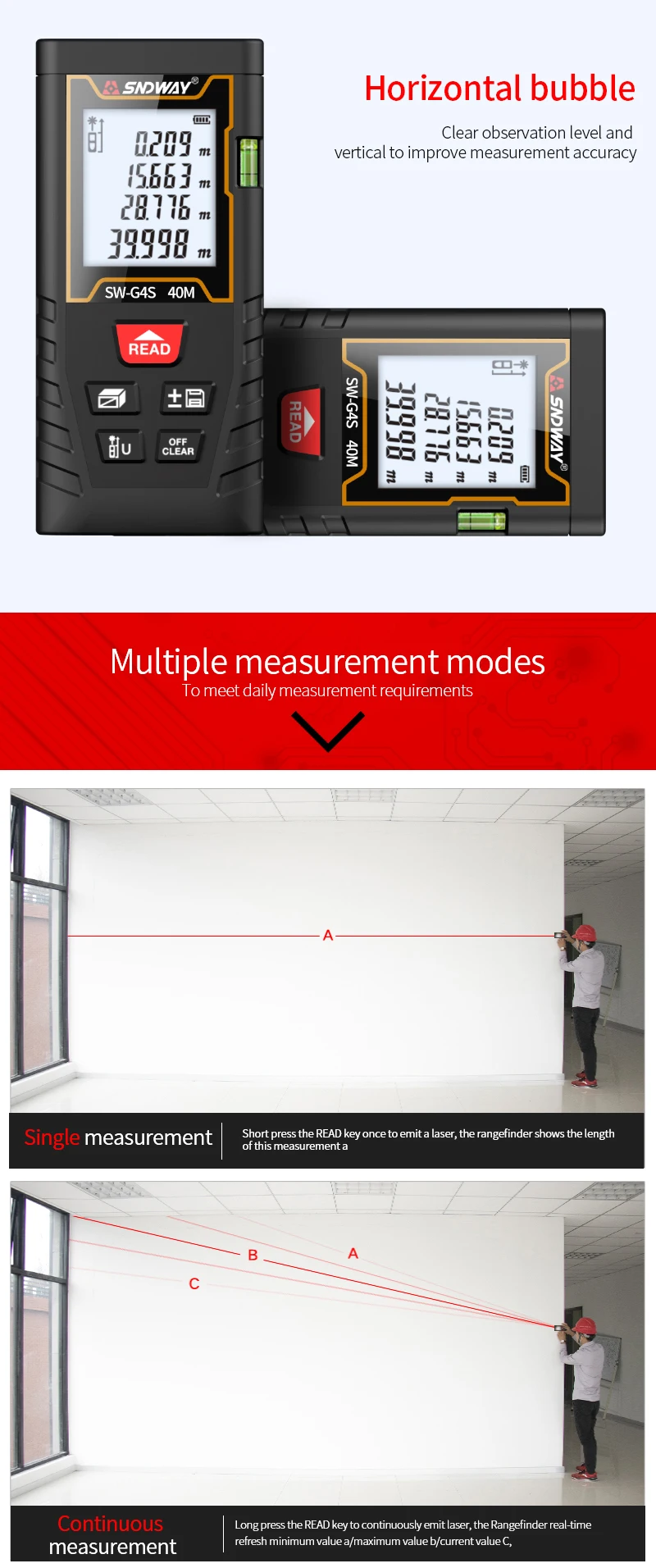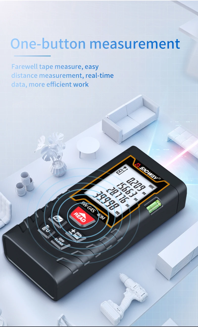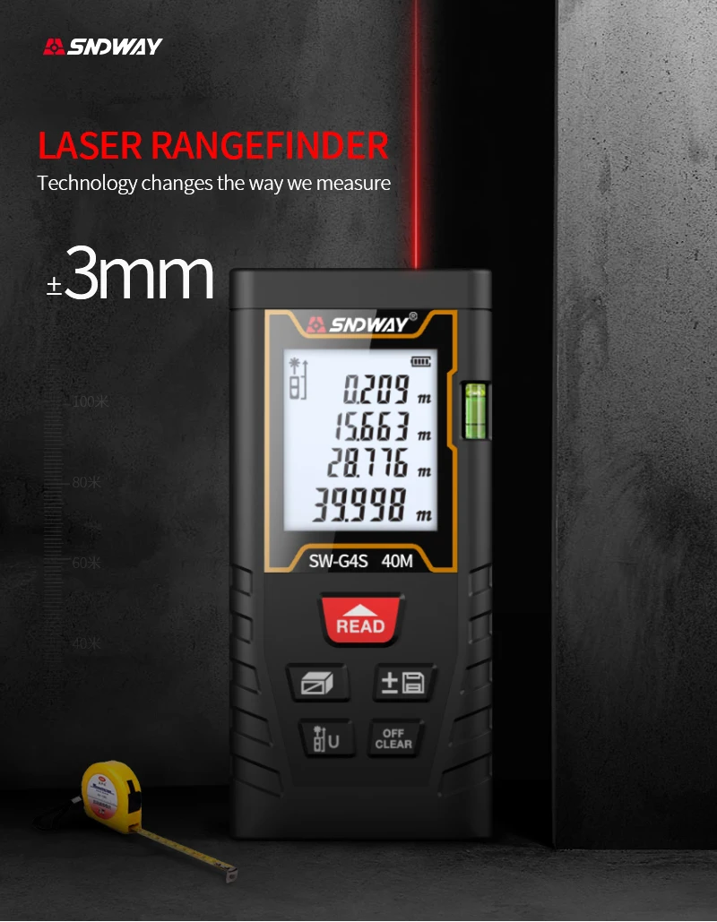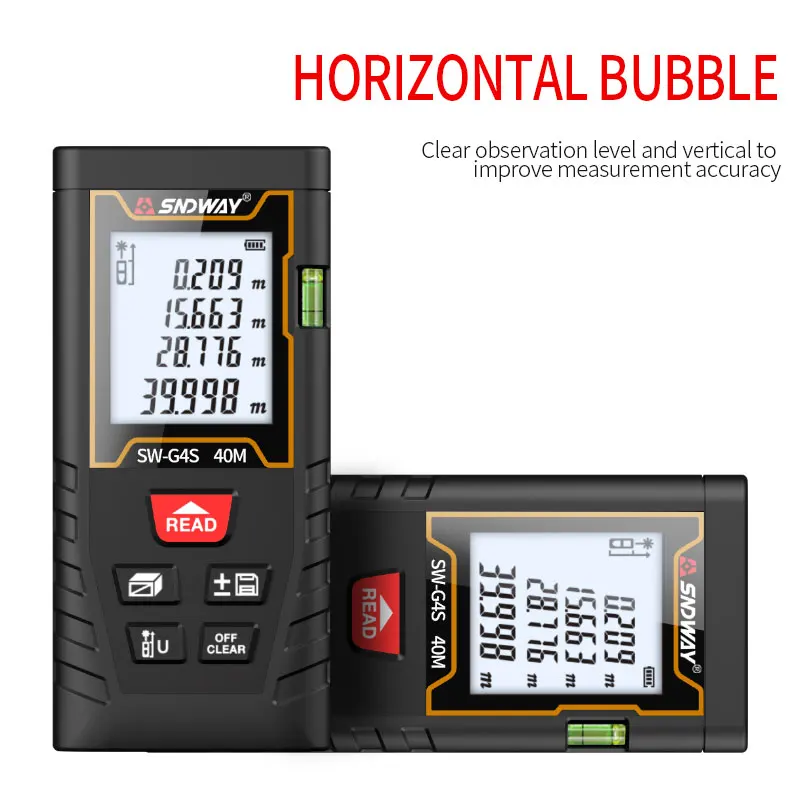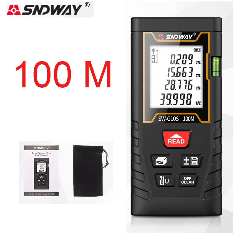 Лазерный дальномер SNDWAY, высокоточный измеритель расстояния, электронная линейка для охоты, 40 м, 60 м, 80 м, 100 м, горизонтальный с пузырем