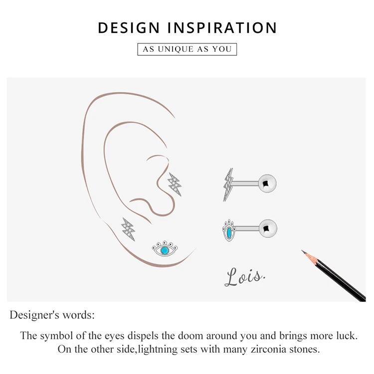 Bamoer 925 пробы Серебряный глаз мудрости Сияющие серьги-гвоздики и...