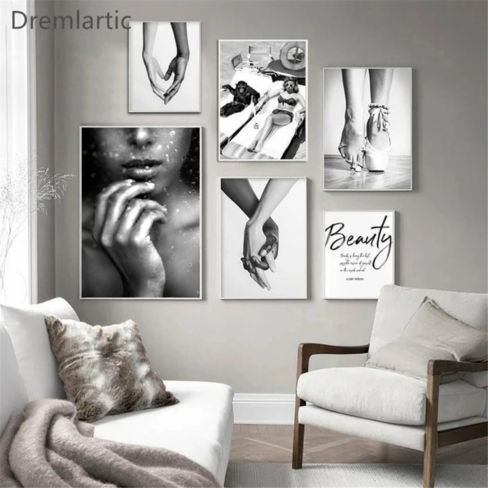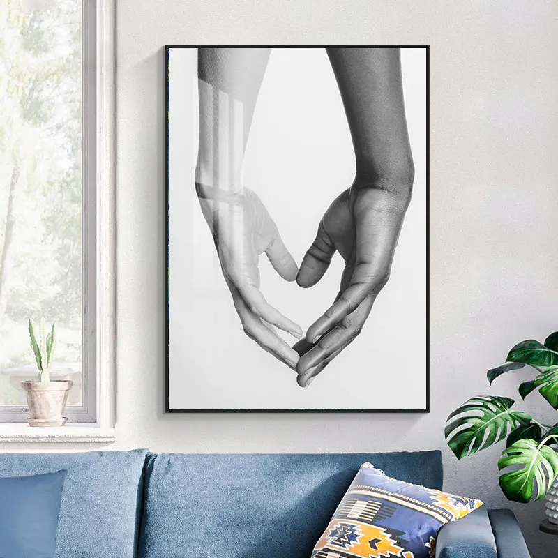 Черно-белый простой ручной декор для влюбленных, холст, плакат, Декоративный принт, Настенная картина для гостиной #21-0128-03-17