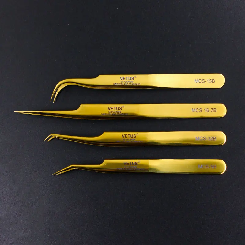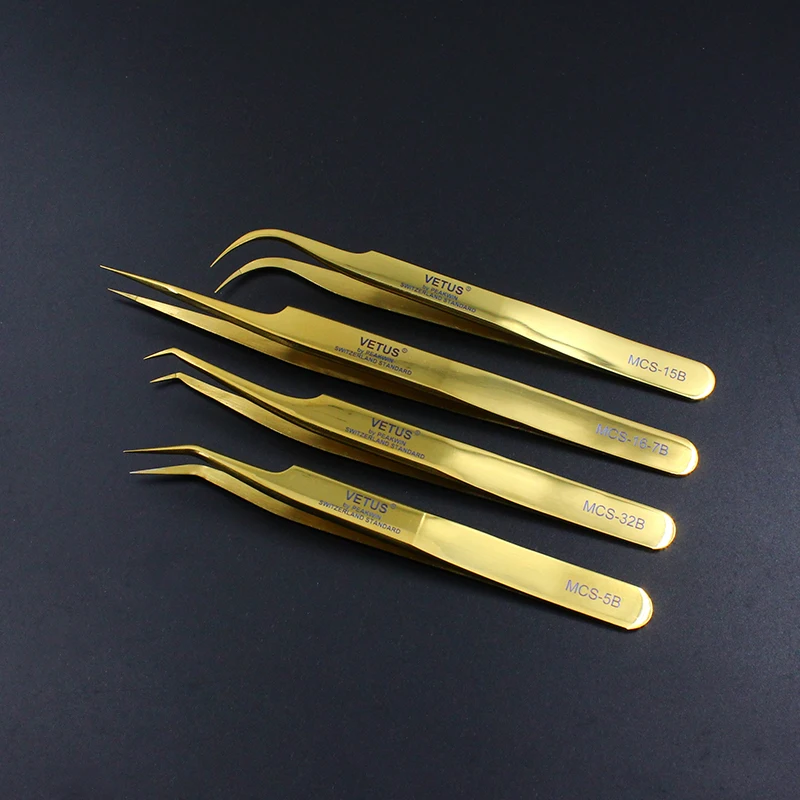 Пинцет для бровей VETUS, золотистый, высокоточный, объемный Пинцет для наращивания ресниц, отличное закрытие, профессиональный инструмент для макияжа