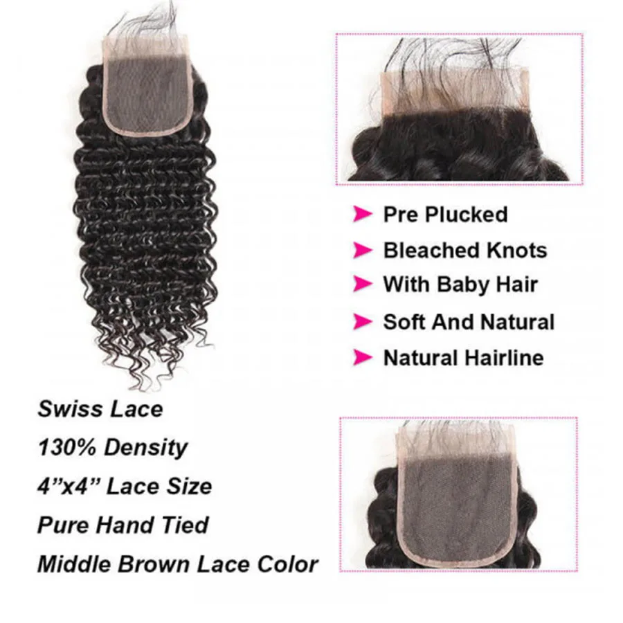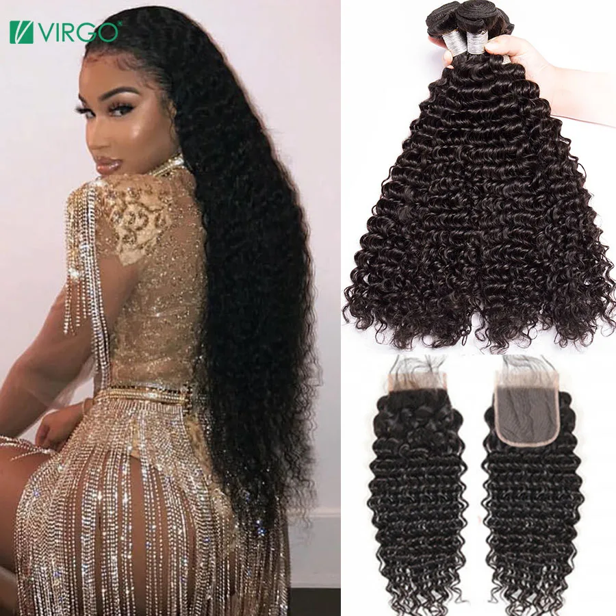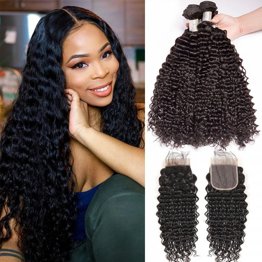 Дева бразильский вьющиеся пряди с закрытием Remy человеческих волос 30 дюймов глубокая волна пряди с кружевом фронтальной Пряди человеческих волос для наращивания