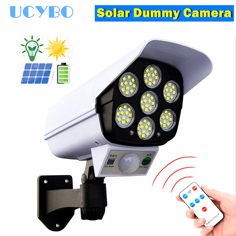 Пустышка камеры солнечной энергии Поддельные Безопасности Смарт-камера водонепроницаемый cctv открытый белый светильник детектор движения манекен камеры наблюдения