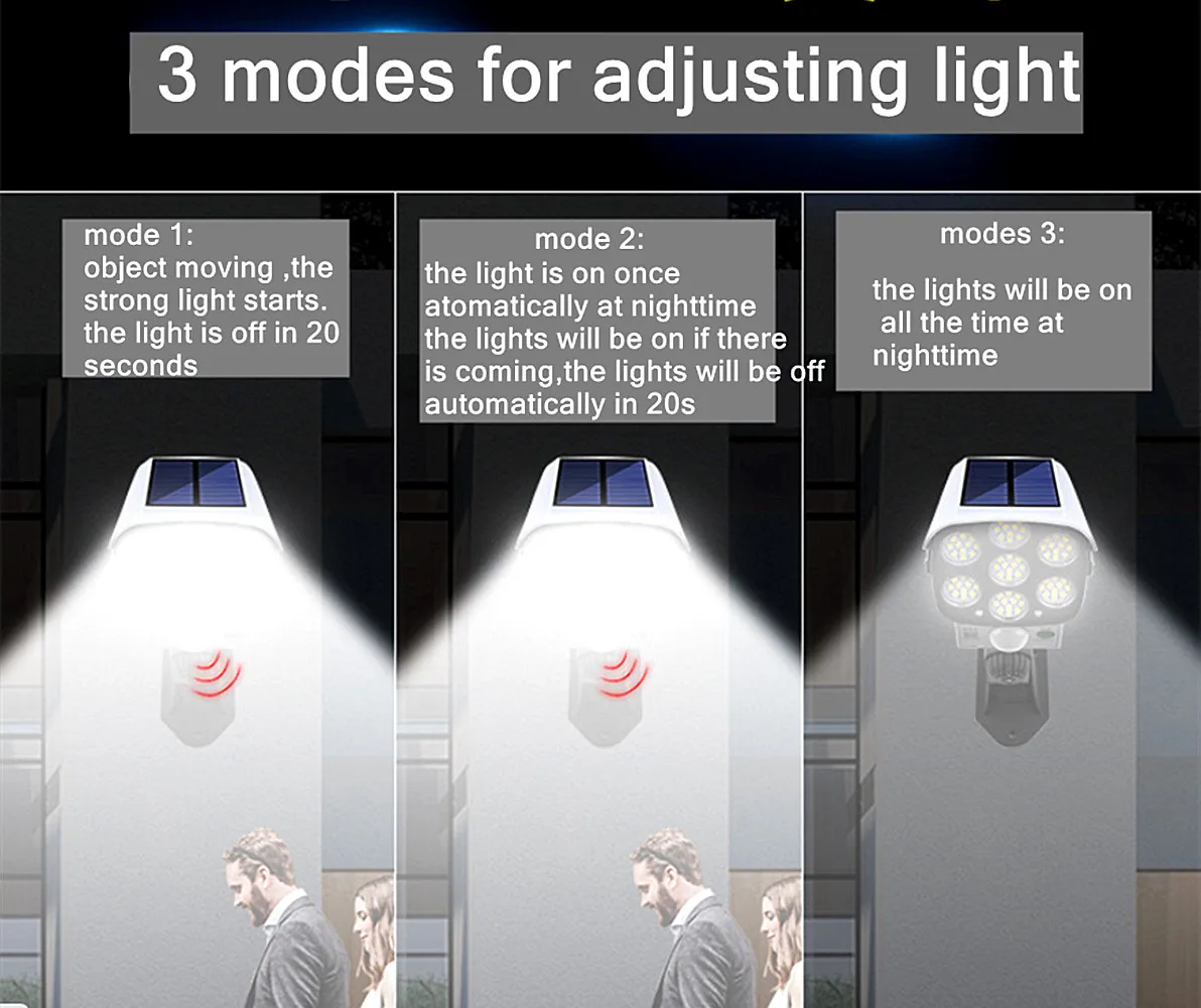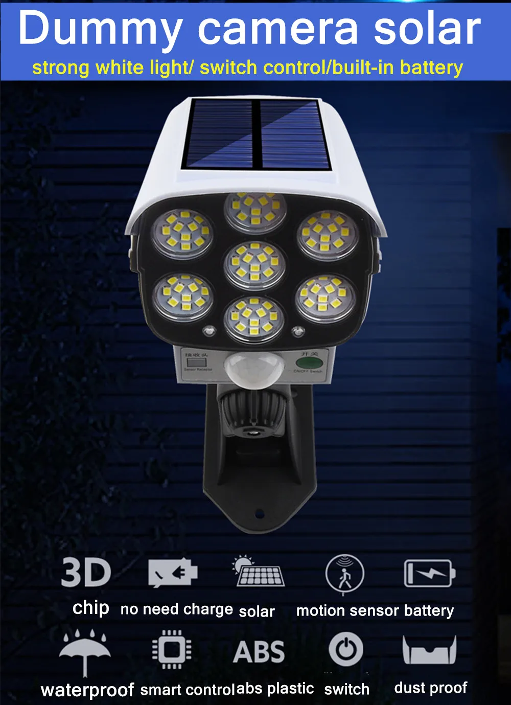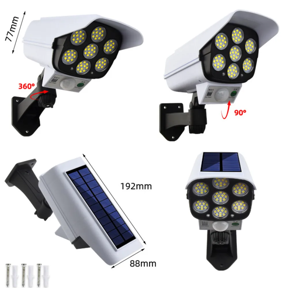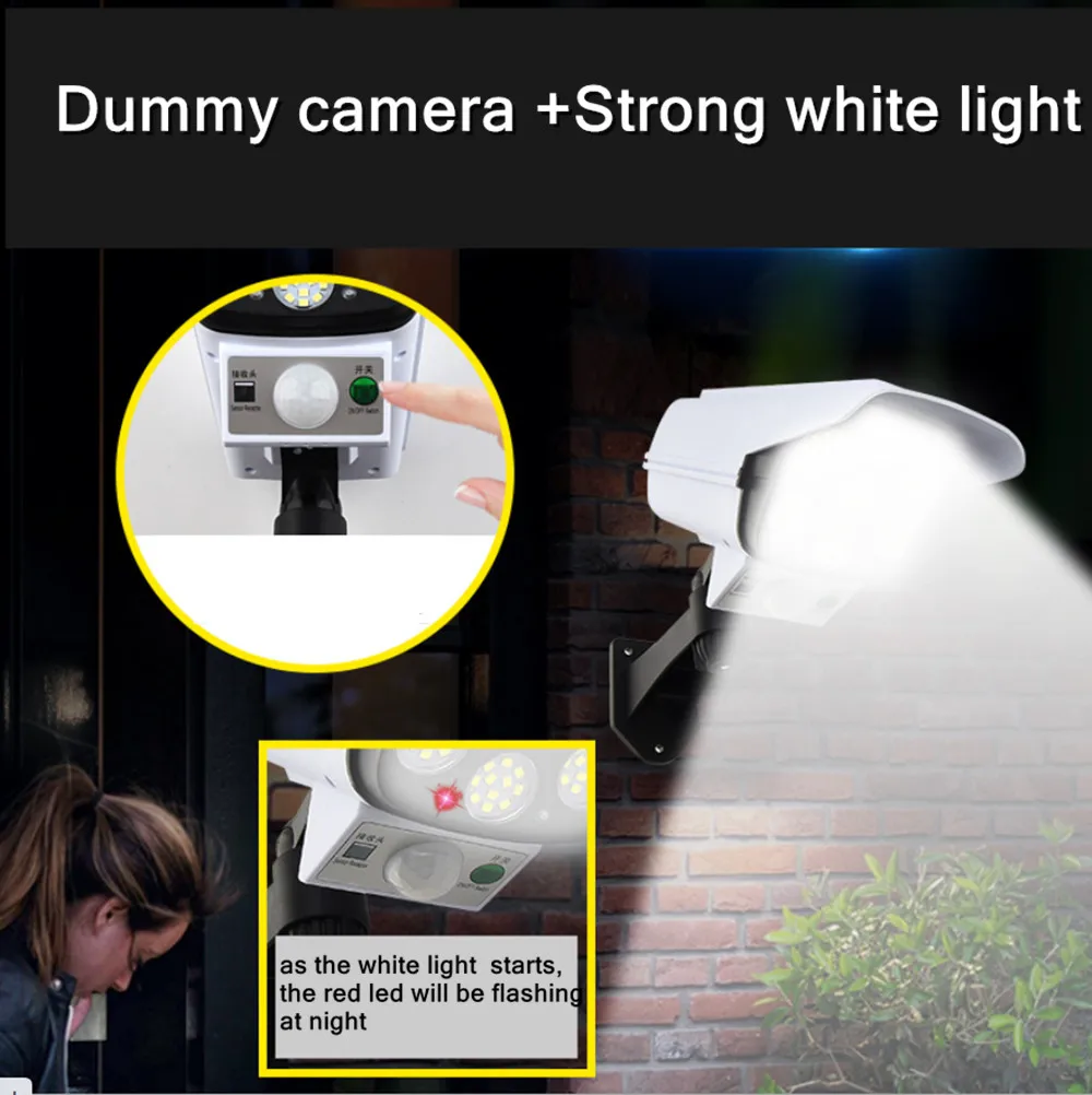 "Пустышка камера Солнечная с умным светодиодный светильник функция режима: нажмите переключатель, вы можете настроить 3 режима светильник.