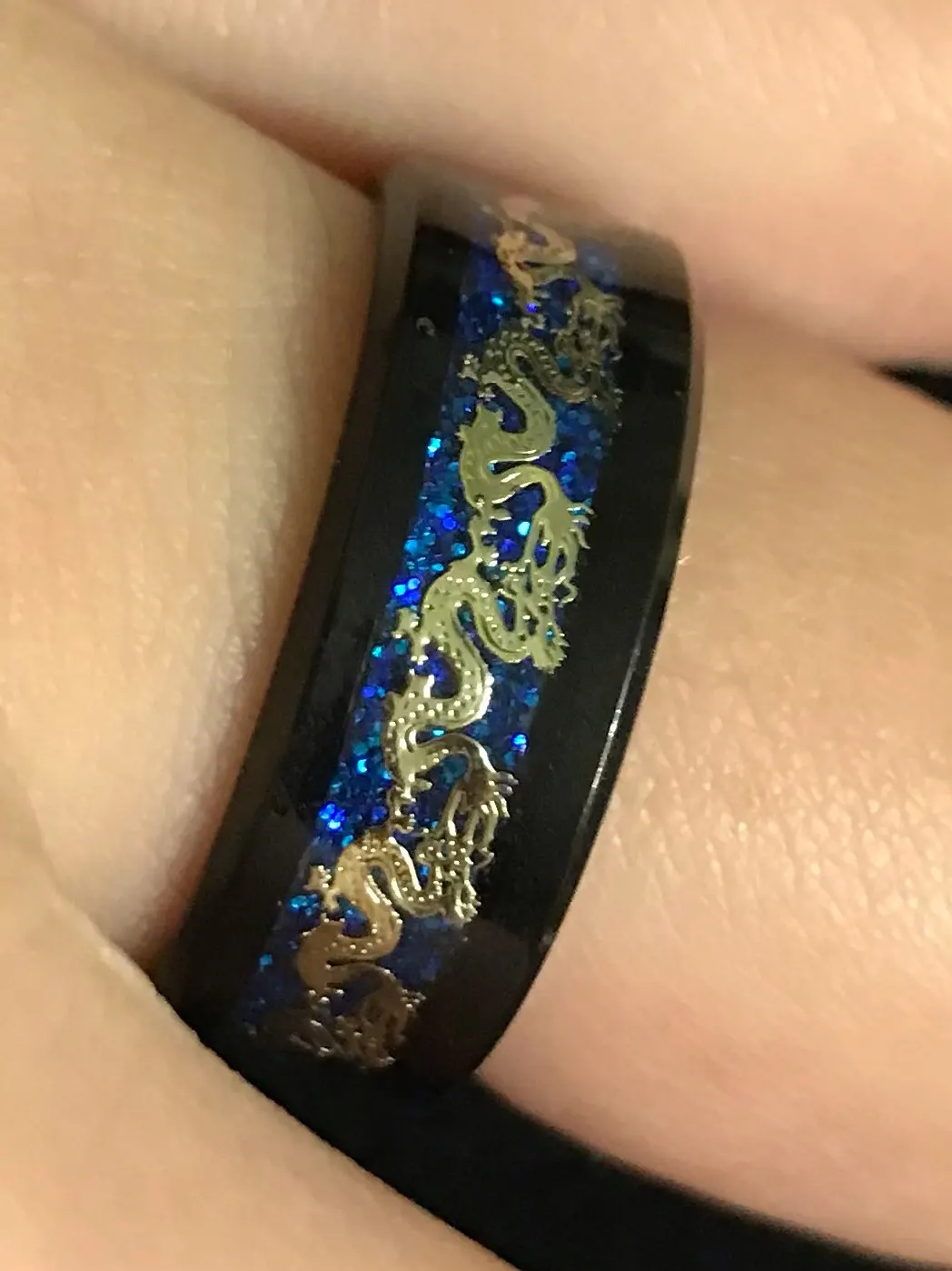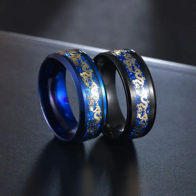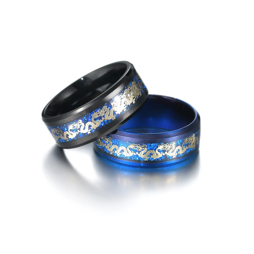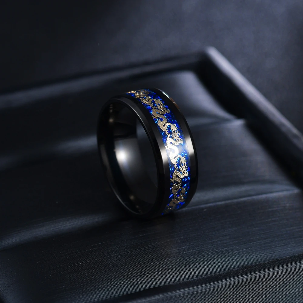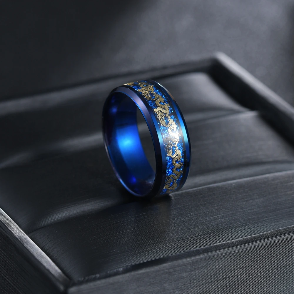 Кольцо с драконом из углеродного волокна для мужчин, обручальное кольцо из титановой стали синего и черного цвета, кольца-Амулеты, ювелирные изделия