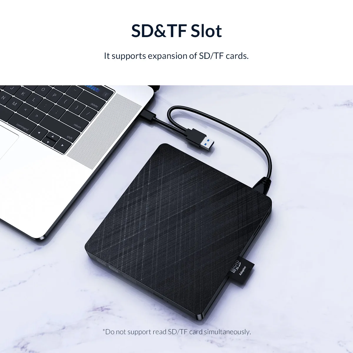 Внешний оптический привод ORICO, USB 3,0, тонкий, поддержка высокоскоростного чтения, TF-считыватель, проигрыватель для DVD-ROM CD-RW, записывающее устройство для ноутбуков, Macbook, ПК