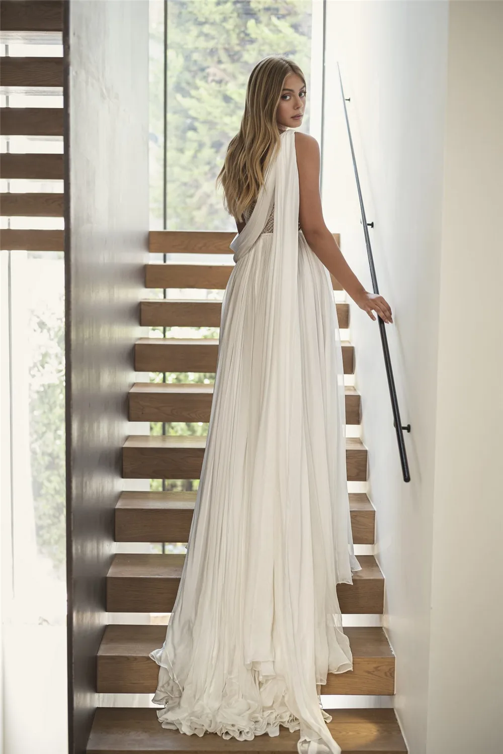 Шифоновое пляжное свадебное платье с одним открытым плечом и бисером, платья невесты в стиле бохо, сексуальные свадебные платья с высоким Боковым Разрезом, свадебные наряды, 2021