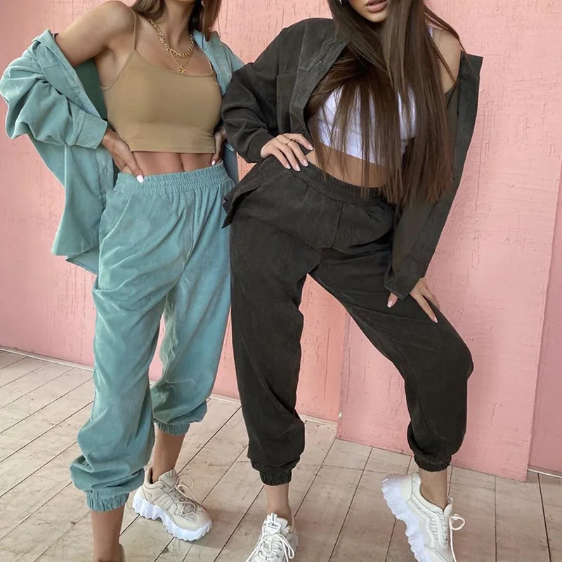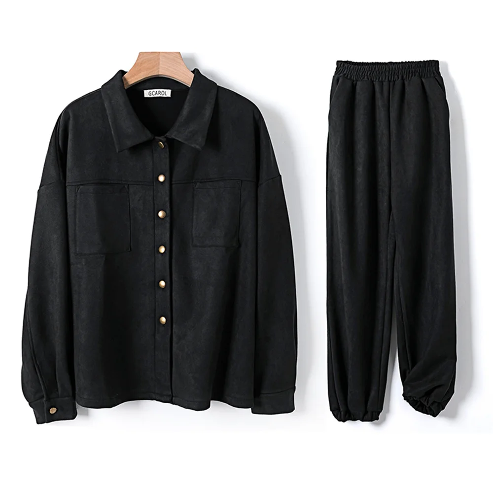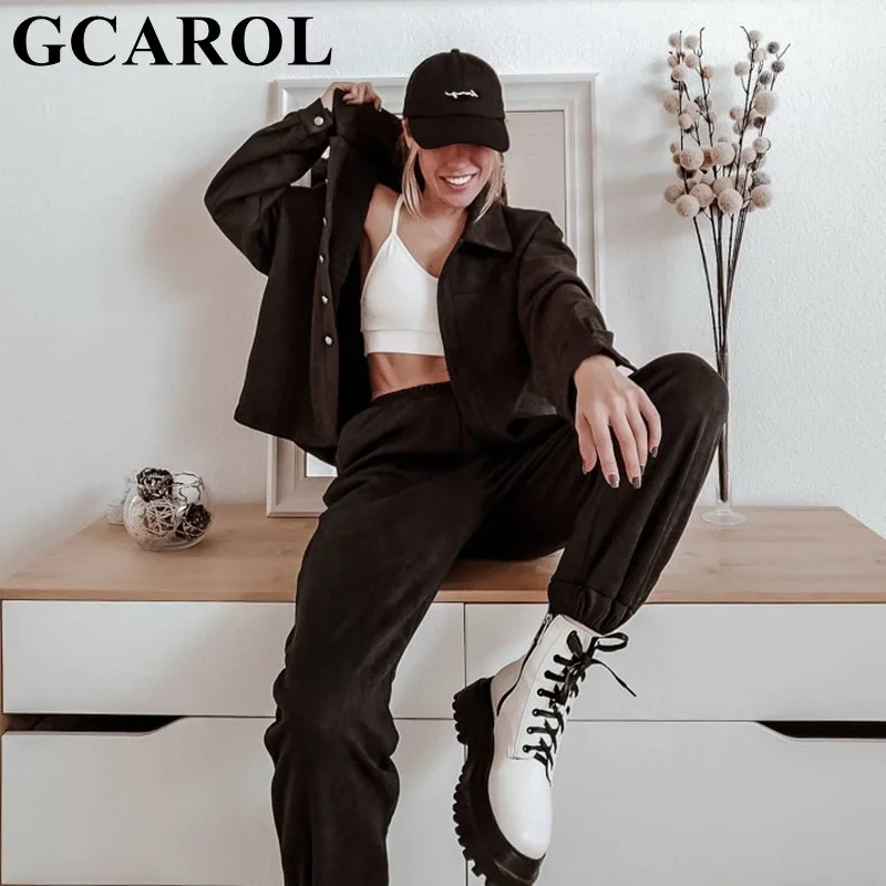 Женский спортивный костюм GCAROL, бархатный однобортный жакет, штаны-шаровары со спущенными плечами, свободные брюки-карго большого размера с эластичной талией, 2 шт.