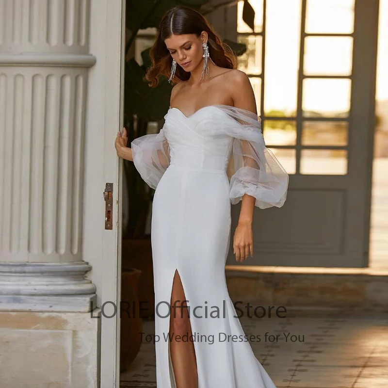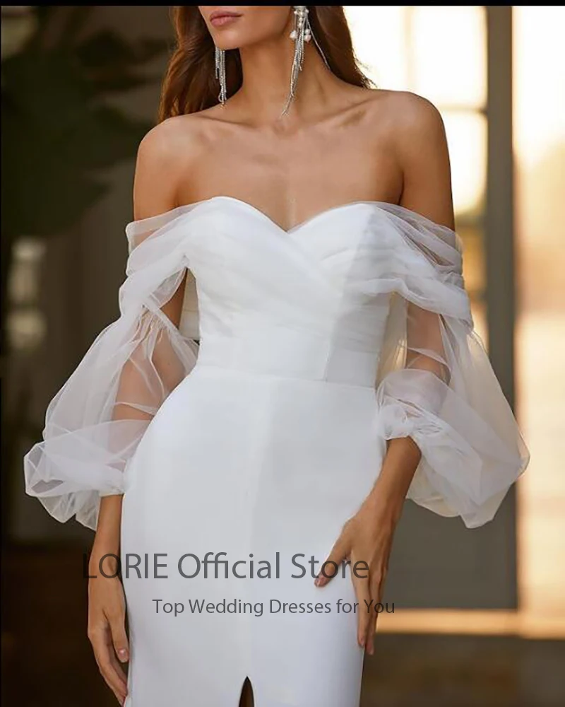 Винтажные Свадебные платья LORIE в стиле бохо с открытыми плечами тюлевые шифоновые белые платья с пышными рукавами Русалка для невесты 2021 свадебные платья