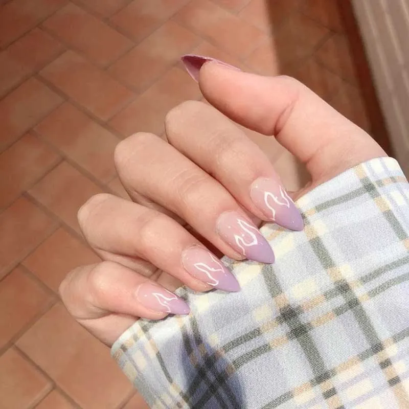 Накладные ногти, 24 шт., накладные ногти с рисунком пламени, съемная марлевая Накладка для маникюра фальшивые ногти