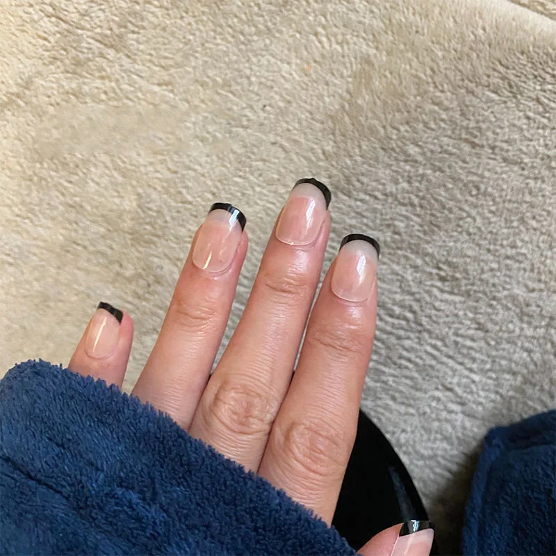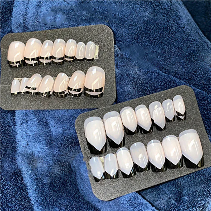24 шт искусственные короткие ногти с резиновыми полосками продается черно французский накладные ногти для ног, съемная газовое маникюр патч полное покрытие акриловый Фрезер для ногтей cо шлифовальными продукты