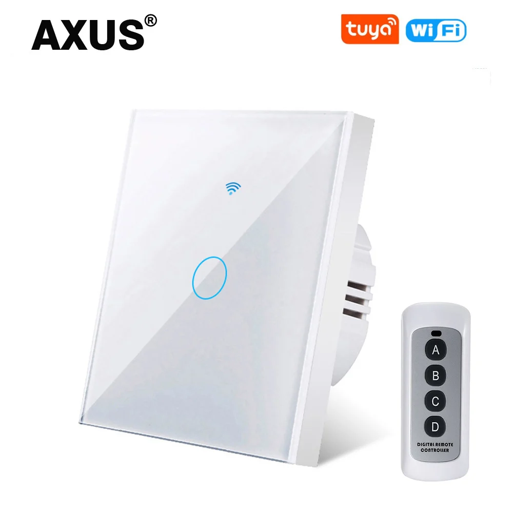 Настенный сенсорный выключатель AXUS, с нейтральным проводом или без, Wi-Fi светильник 1 клавиша, 1 канал, управление через приложение Tuya Smart Life для Google Home, Alexa
