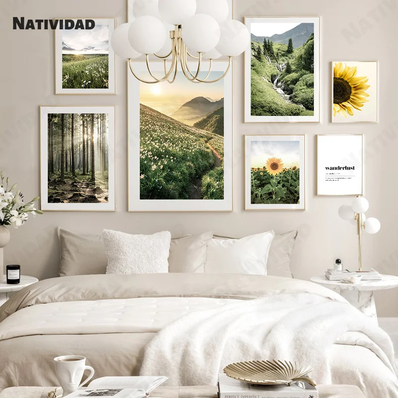 Реалистичная пейзажная живопись путь подсолнуха Плакат С восходом солнца Скандинавская печать Moder...
