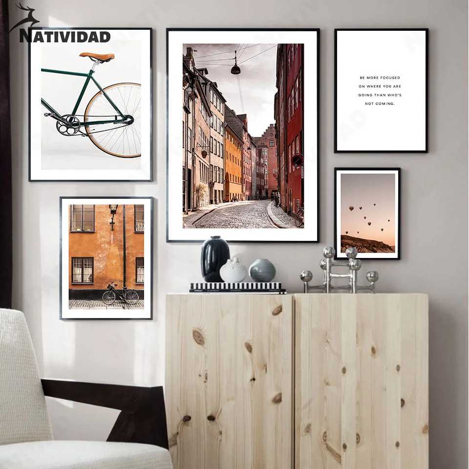 Туристическая архитектура в богемном стиле, пейзаж, искусство, холст, живопись, простая линия, Gi...