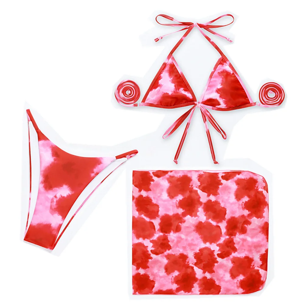 Комплект бикини Dvicky женский из 3 предметов, пикантный красный ку...