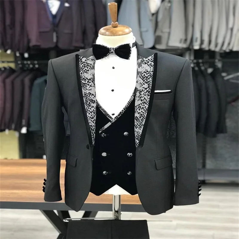 Мужские костюмы из 3 предметов, свадебные костюмы черного цвета с а...