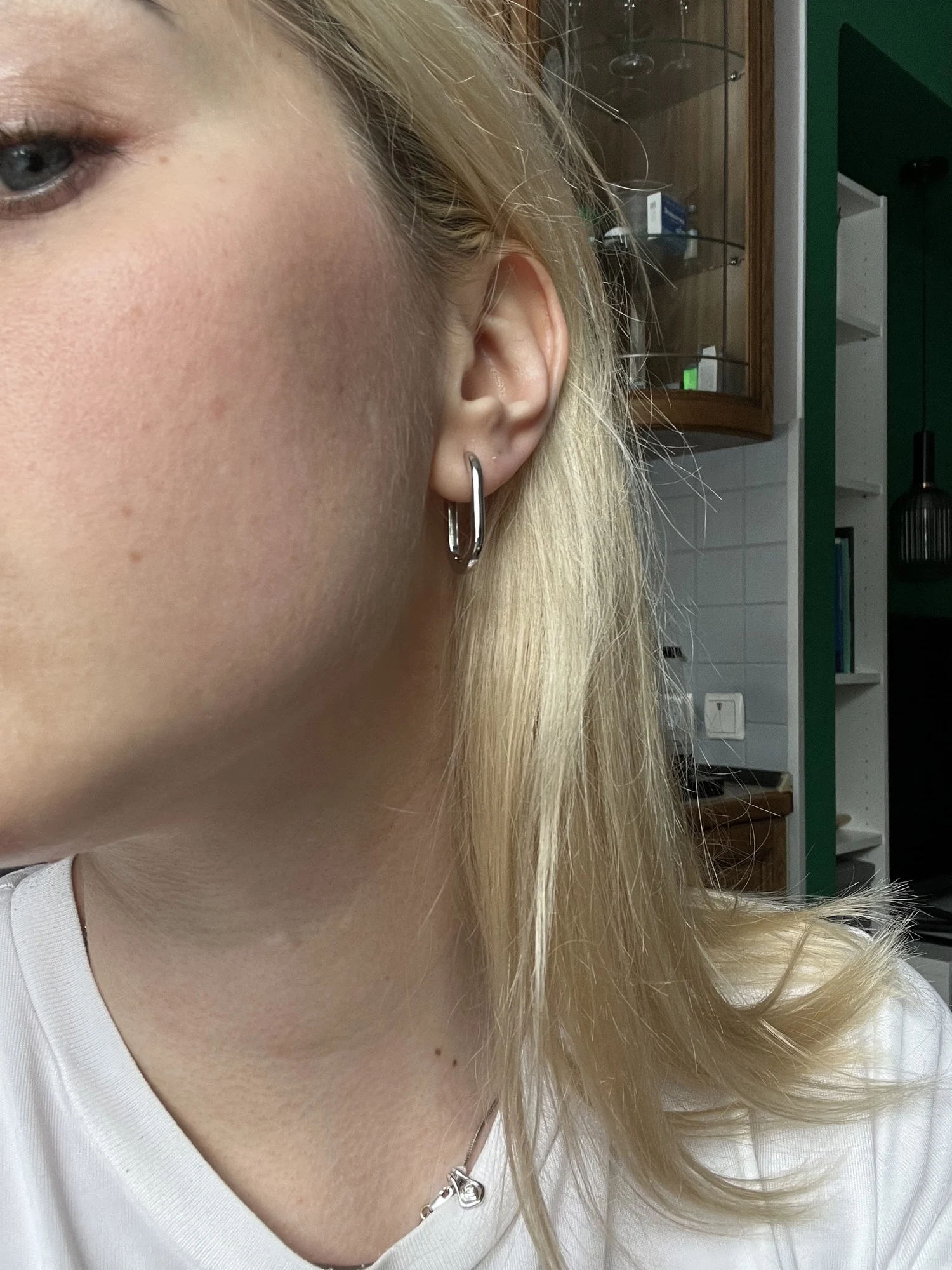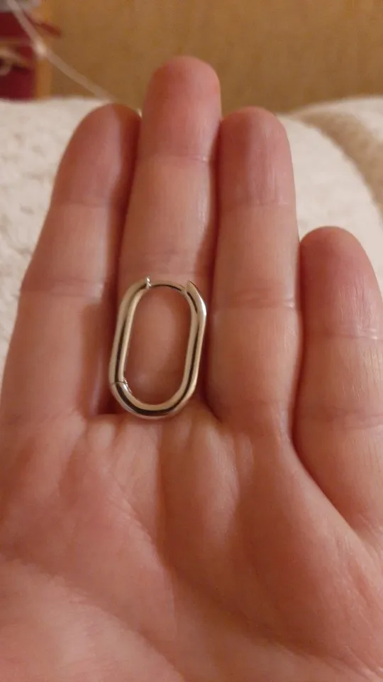 Очень крутые!!! Именно такие,как я хотела. В меру массивные, а самое главное,что хорошая толщина дужки. Я очень довольна. Это третьи из этого магазина. Первые брала маленькие совсем на пробу. Материал носится хорошо,поэтому заказала эти. Не чернеет, уши не болят.