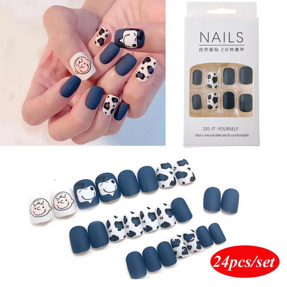 Накладные ногти 24 шт.компл. носимые накладные ногти с круглой головкой полное покрытие короткие накладные ногти с клеем DIY Маникюрный Инструмент