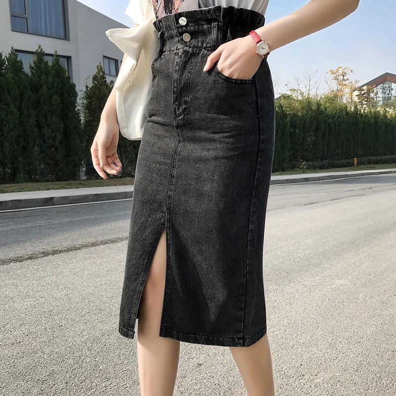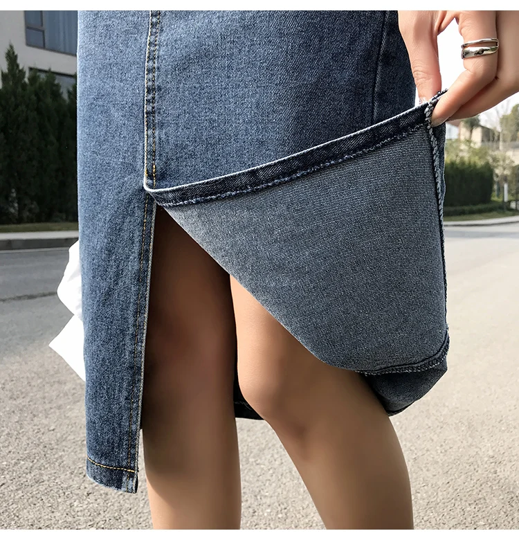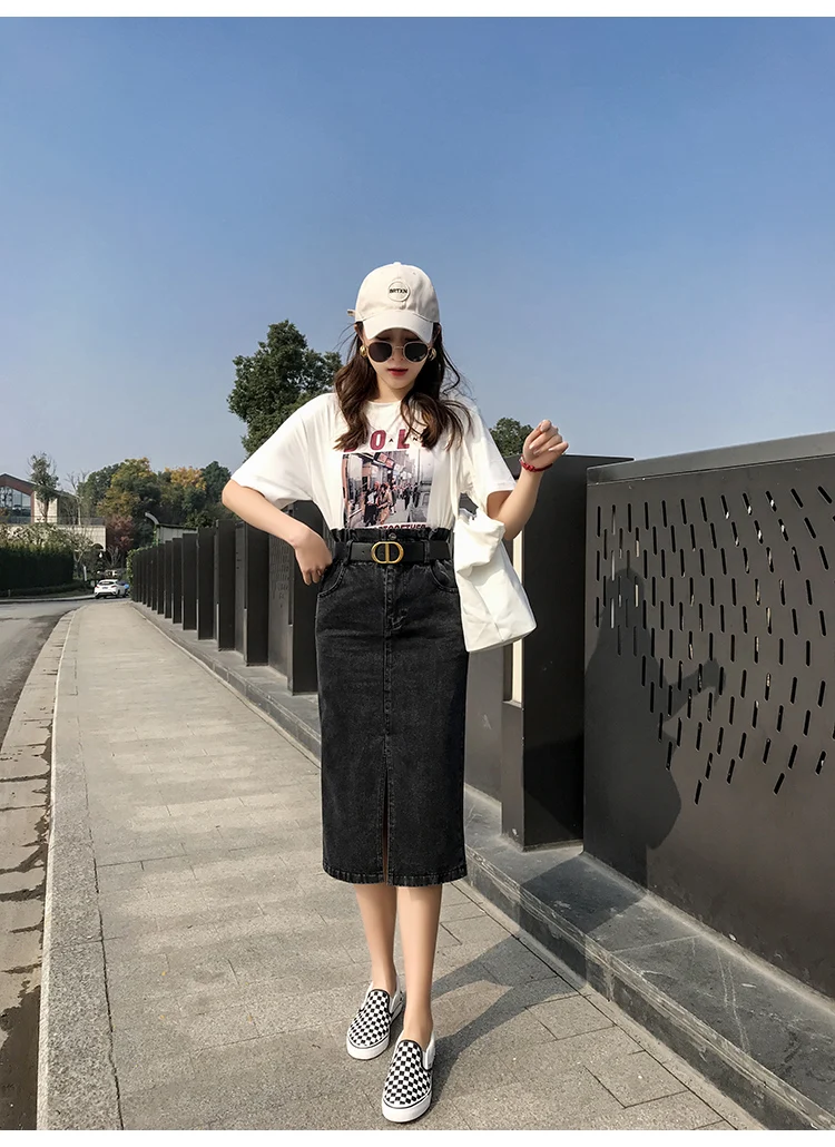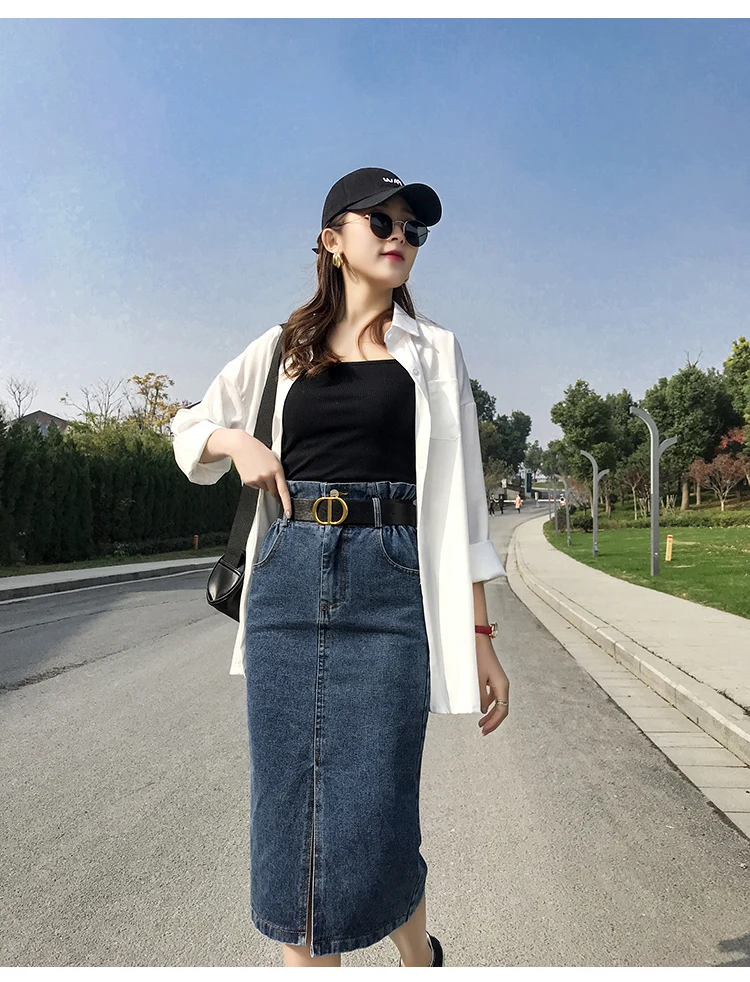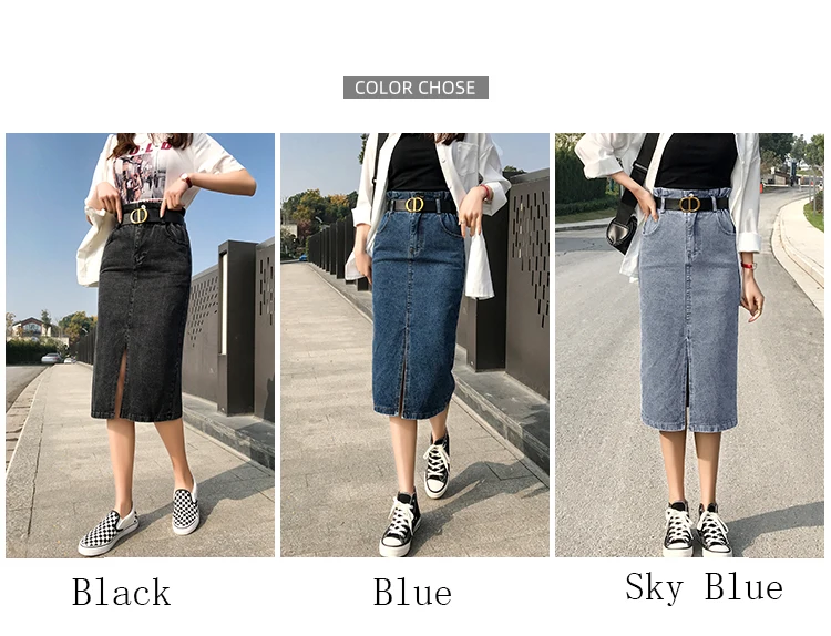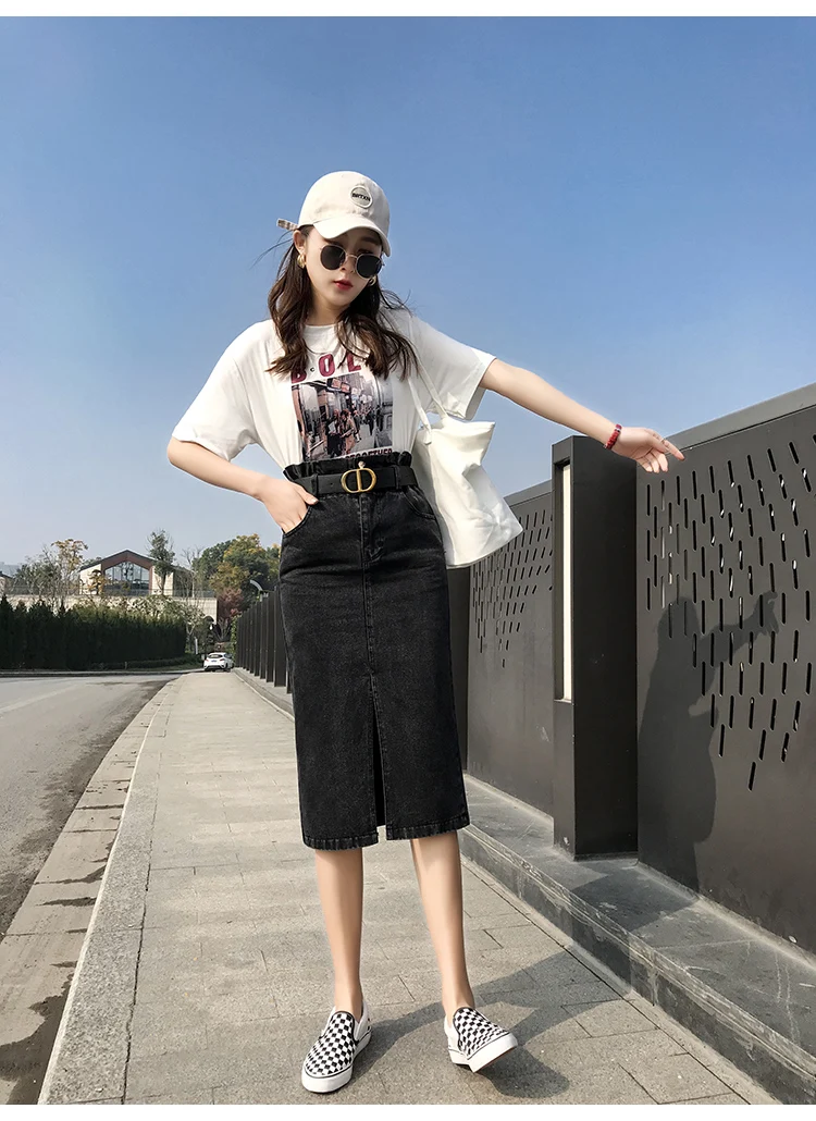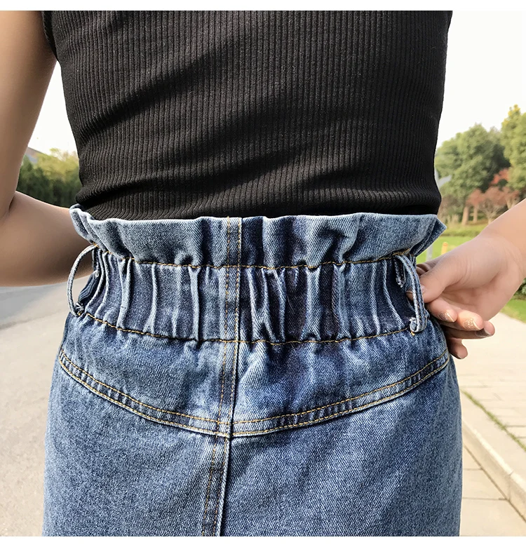 Женская джинсовая юбка с высокой эластичной талией, синяя, черная трапециевидная юбка с ремнем, джинсовая юбка в уличном стиле, Новинка лета 2021