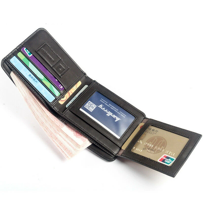 Для Мужчин's из искусственной кожи Кошелек двойного сложения кожаный бумажник ID держатель для карт монет Кредитная карта кошелек с чековой книжкой короткий клатч, бумажник мужской этих денег сумка