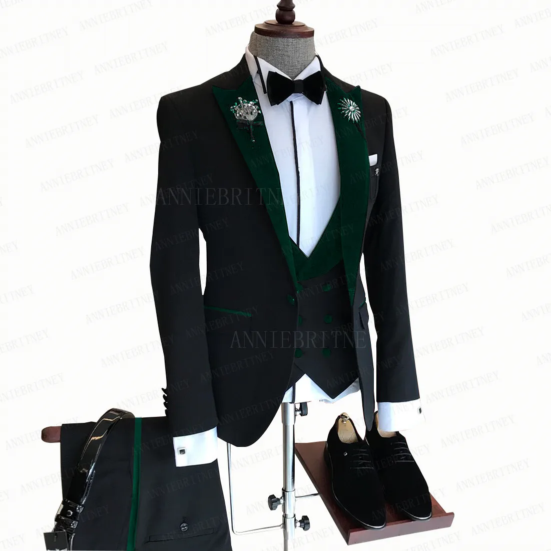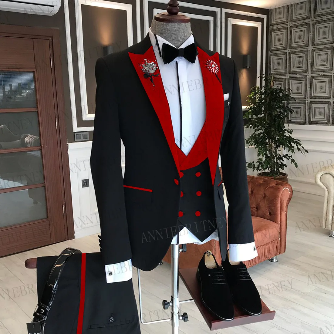 Деловой мужской костюм из трех предметов 2021, мужской жакет, индивидуальный Модный свадебный костюм для жениха, смокинг, красный бархатный блейзер с лацканами, жилет и брюки