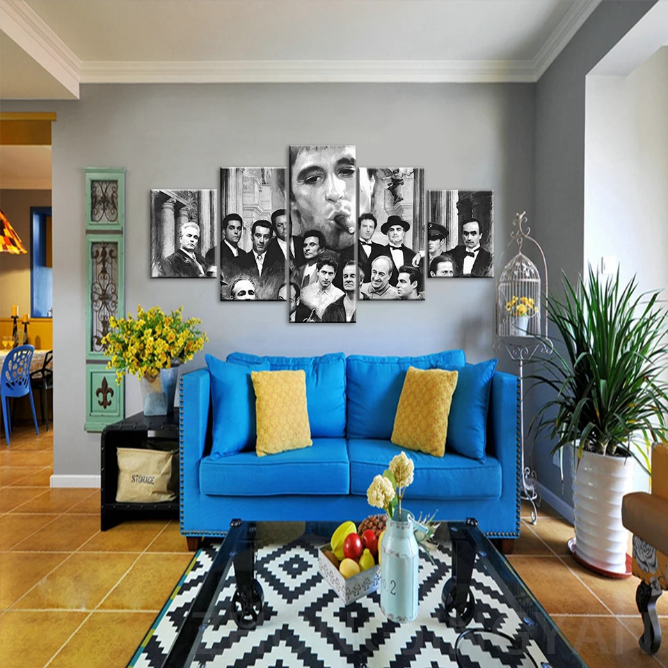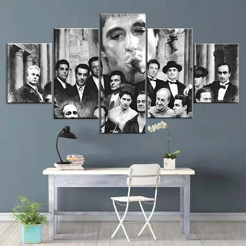 HD Печать на холсте в стиле ретро, 5 шт., Крестный отец, хорошие парни, Scarface, сопранос, модульный постер фильма, картина, Декор, комнатное настенное искусство