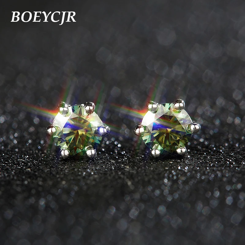 Женские серьги-гвоздики с бриллиантами BOEYCJR S925, 6 когтей, 0,51 карат, зеленый Муассанит VVS1, ювелирные украшения с государственным сертификатом