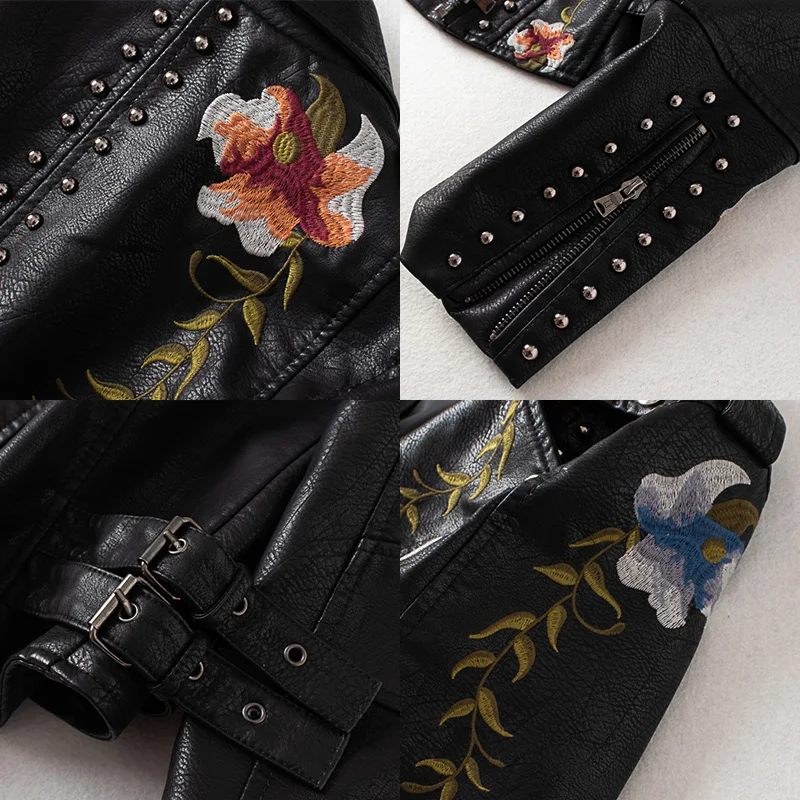FTLZZ Новинка; Сезон весна-осень; Женские туфли из искусственной Босоножки из искусственной PU кожи в винтажном стиле с заклепками; С вышивкой куртка на молнии, одежда на каждый день, детская, верхняя ветрозащитная одежда