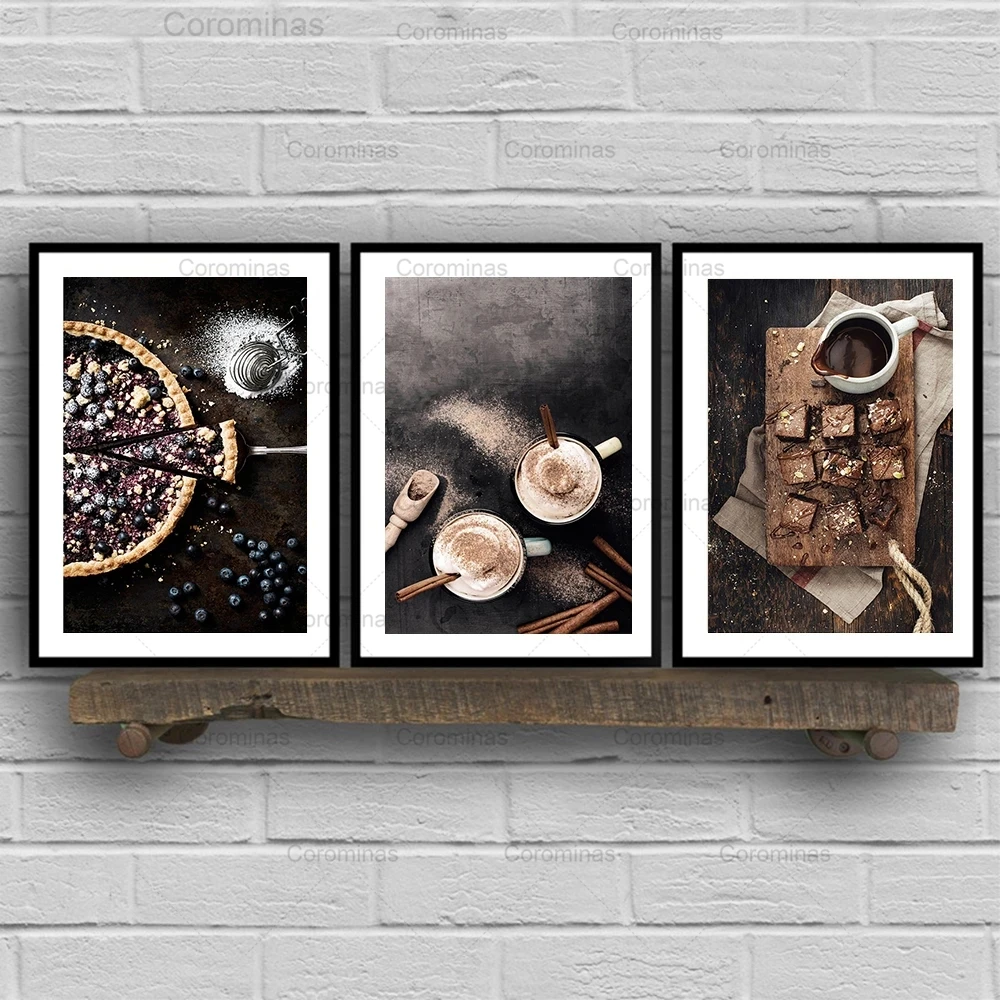 Картины на холсте с изображением кофе, черники, пирога, десертов, п...