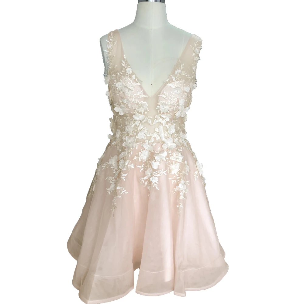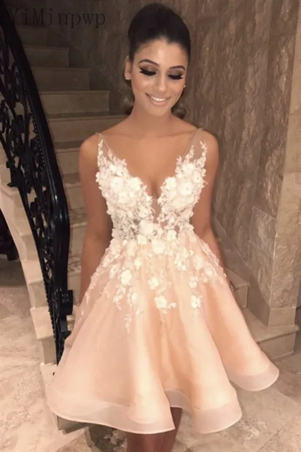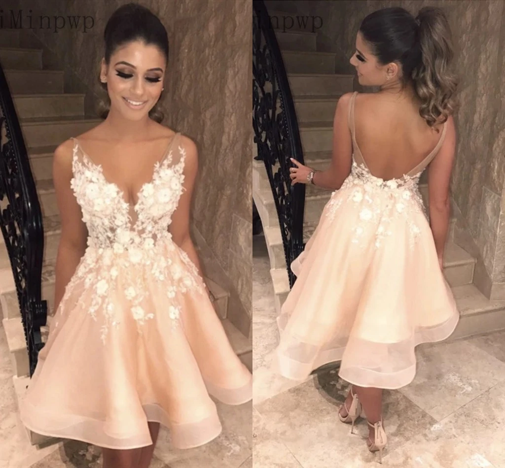 Женское коктейльное платье yimmerpwp, короткое платье с V-образным вырезом, открытой спиной и цветочными 3D аппликациями, для выпускного вечера